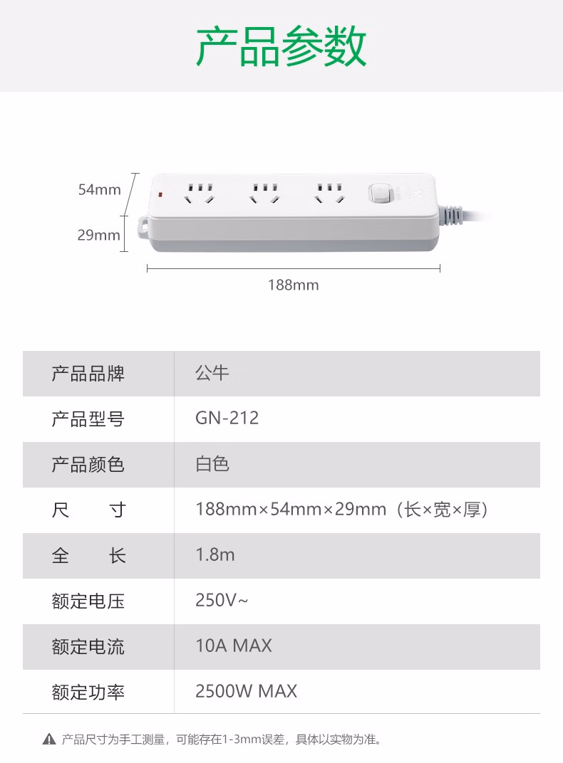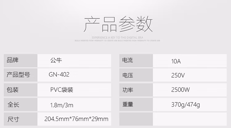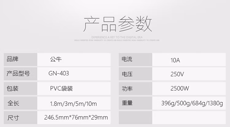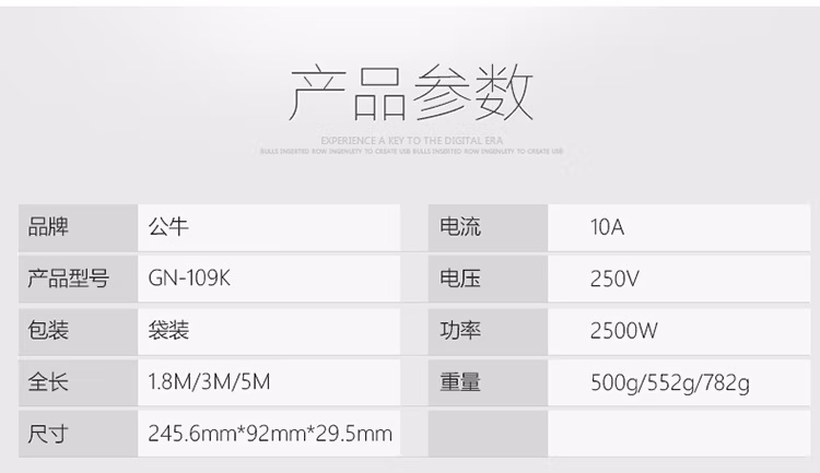 公牛(BULL) GN-607 总控4位10米 插排 (计价单位:个) 白蓝