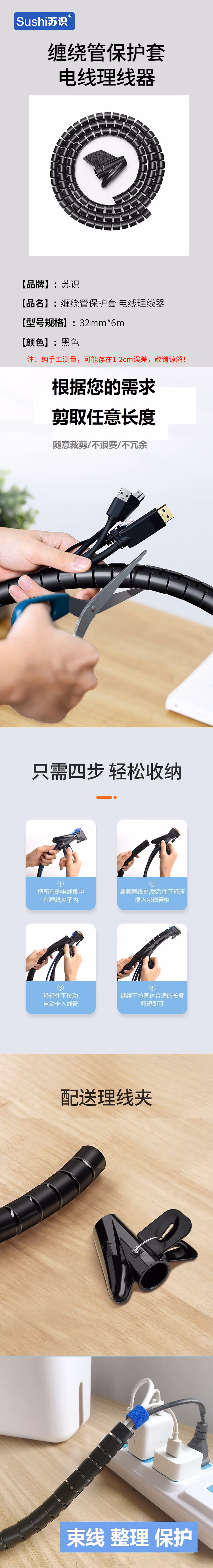 • 商品名称:苏识 32mm*6m 缠绕管保护套 电线理线器 (计价单位:包) 黑色