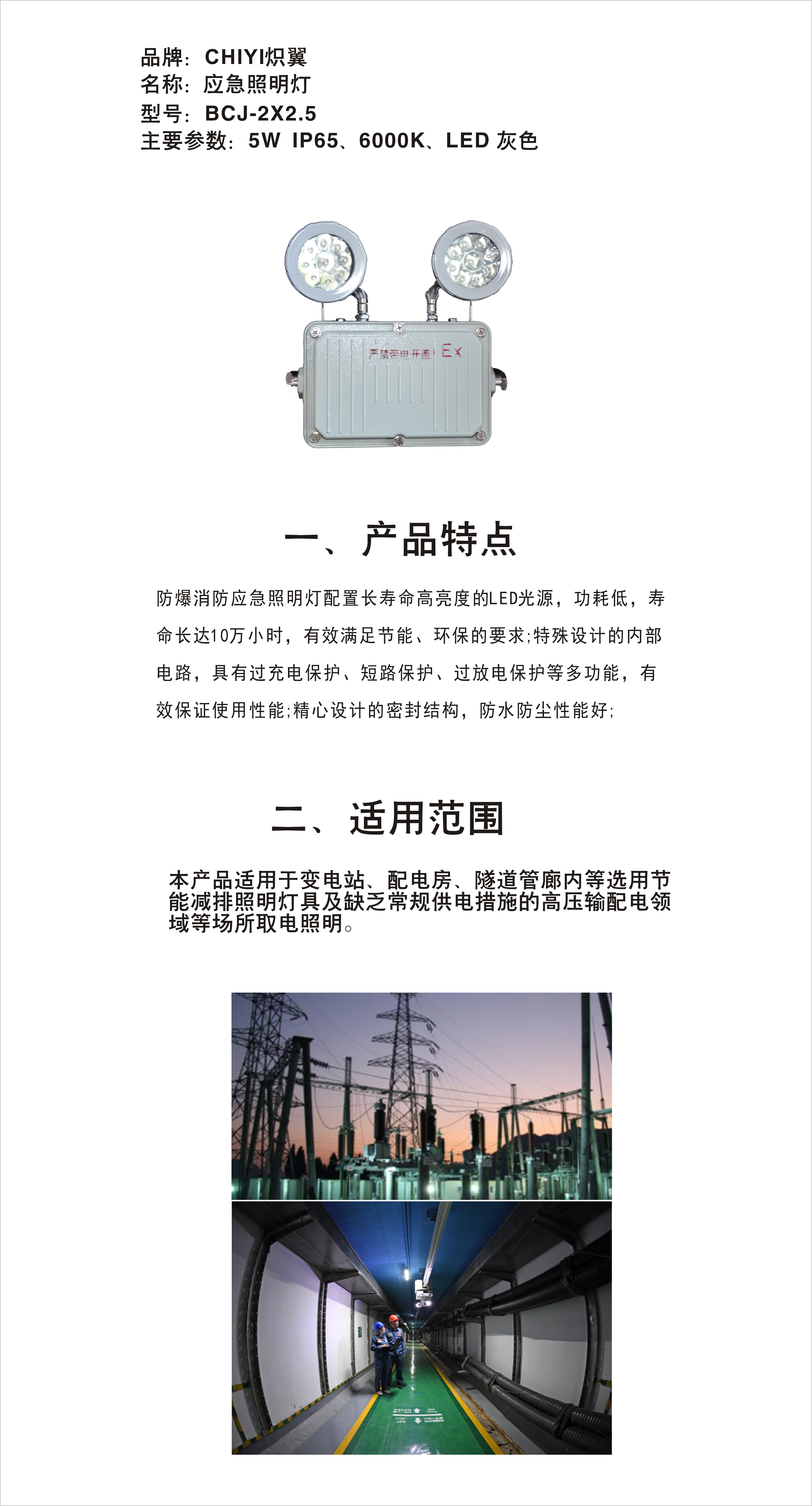 炽翼 BCJ-2X2.5 6000k IP65 消防 应急灯 (计价单位:盏) 灰色