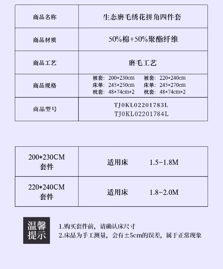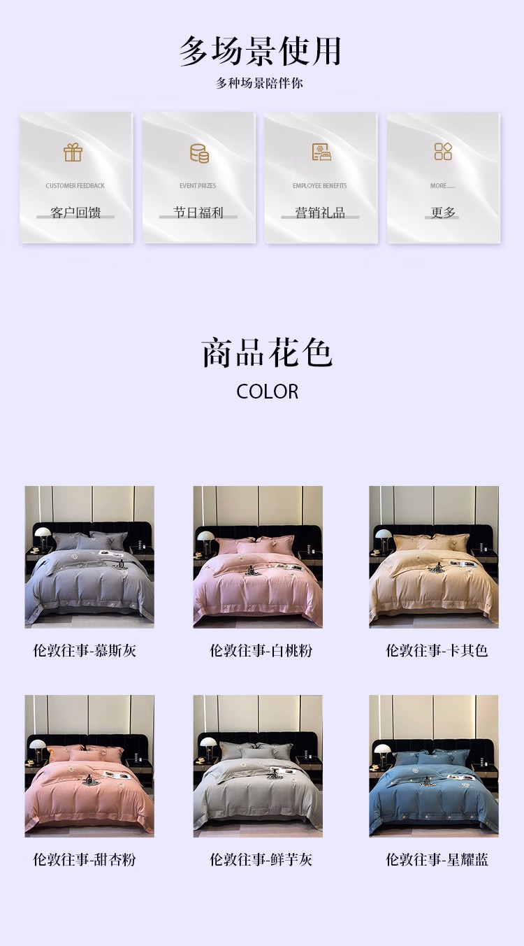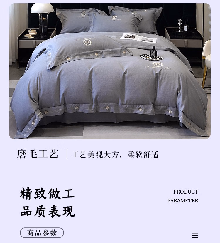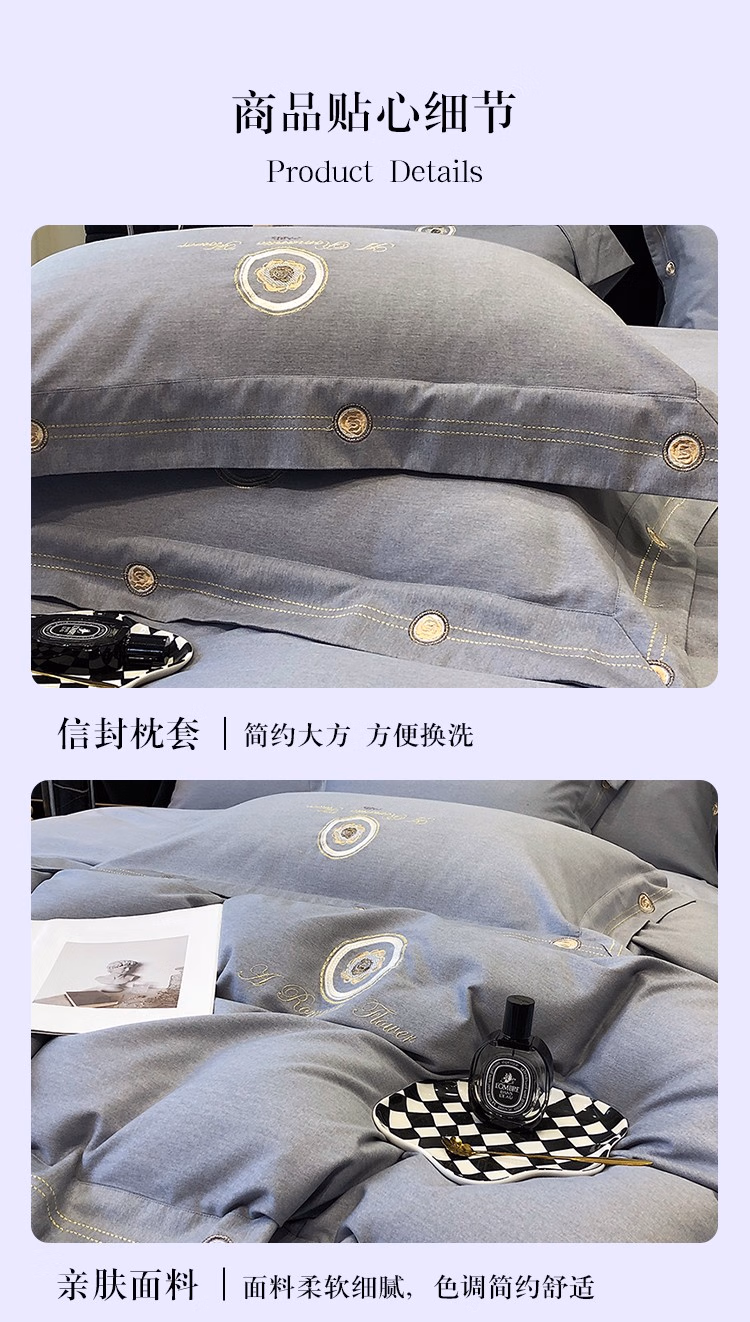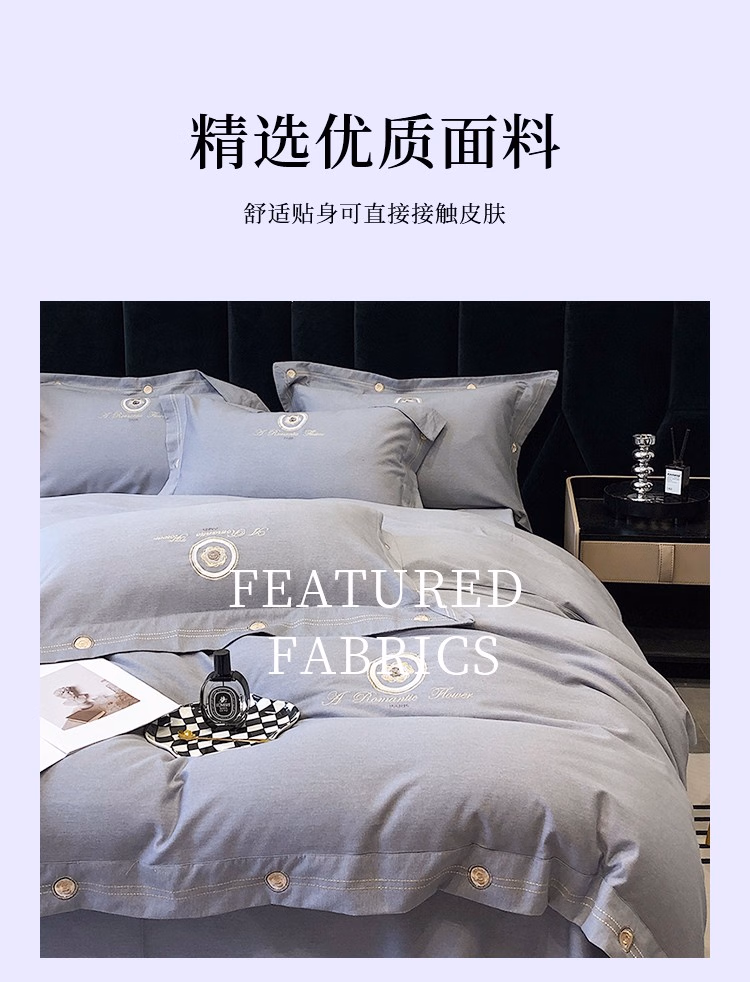 • 商品名称:伊伊爱 生态磨毛绣花拼角伦敦往事系列四件套 慕斯灰 220*240cm/TJ0KL02201784L