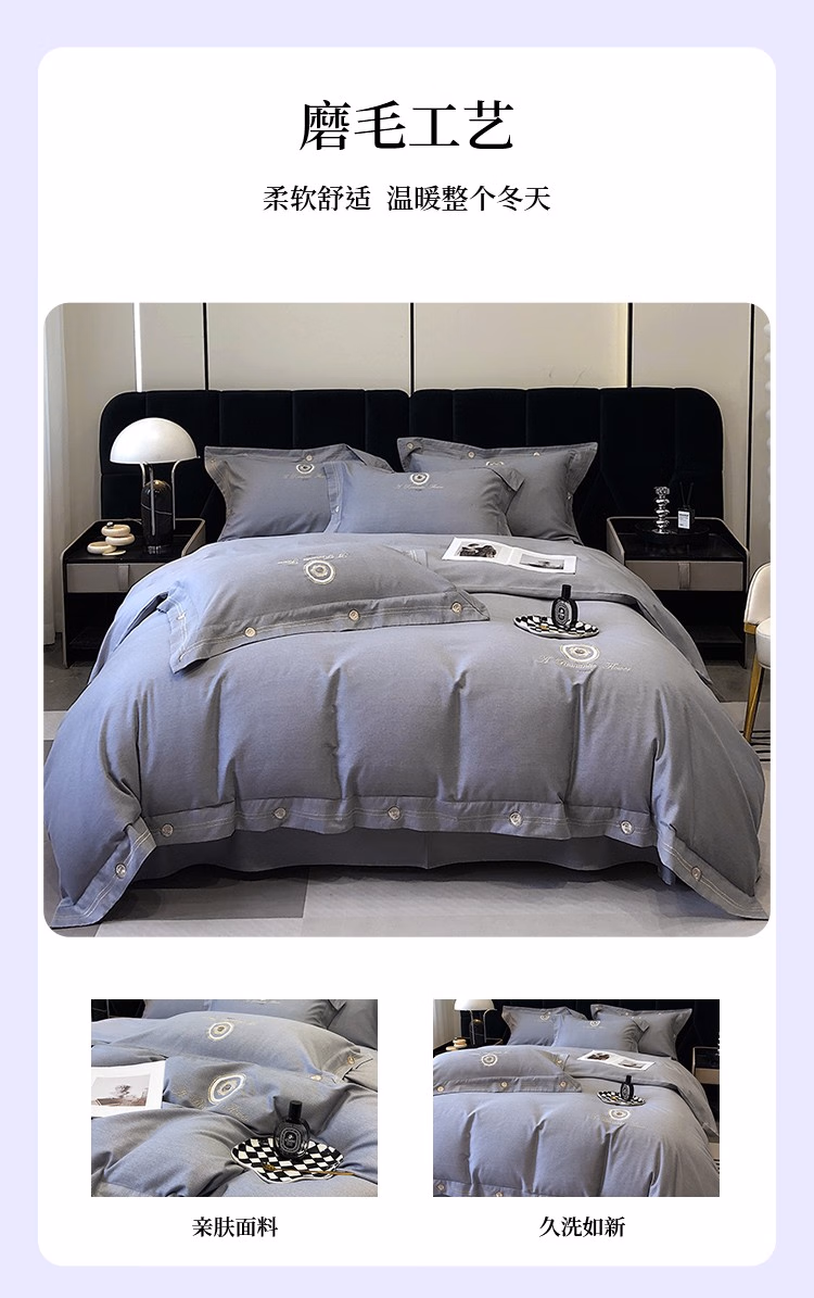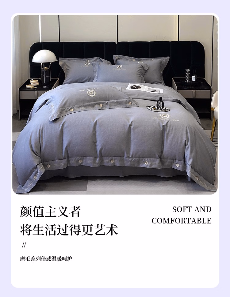 伊伊爱 TJ0KL02201784L /220*240cm 生态磨毛绣花四件套 (计价单位:套) 慕斯灰