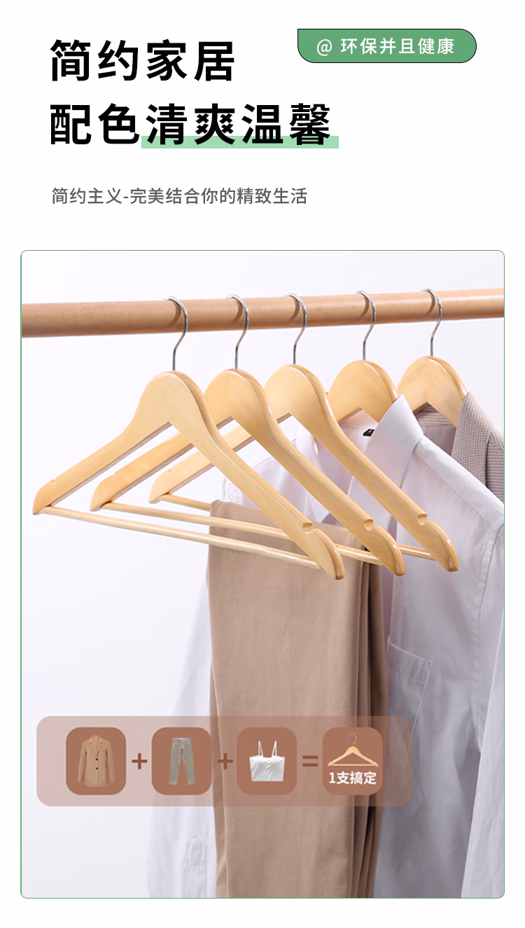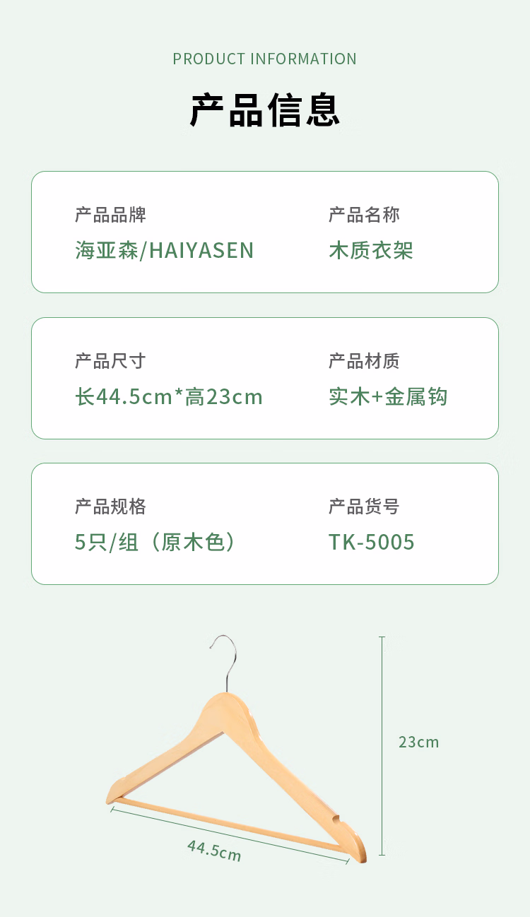 海亚森 TK-5005 44.5cm*23cm 5只/组 木质衣架 5.00 个/组 (计价单位:组) 原木色