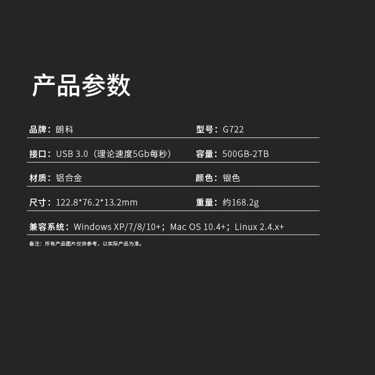 朗科(Netac) G722 USB 3.0 2TB 移动存储硬盘 (计价单位:个) 银色