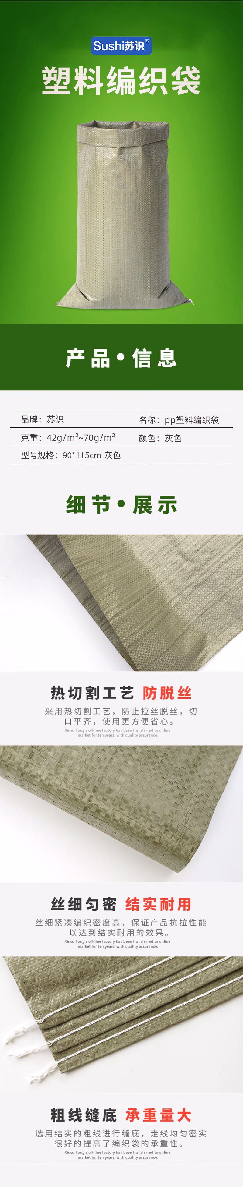 • 商品名称:苏识 90*115cm-灰色 pp塑料编织袋 (计价单位:个) 灰色