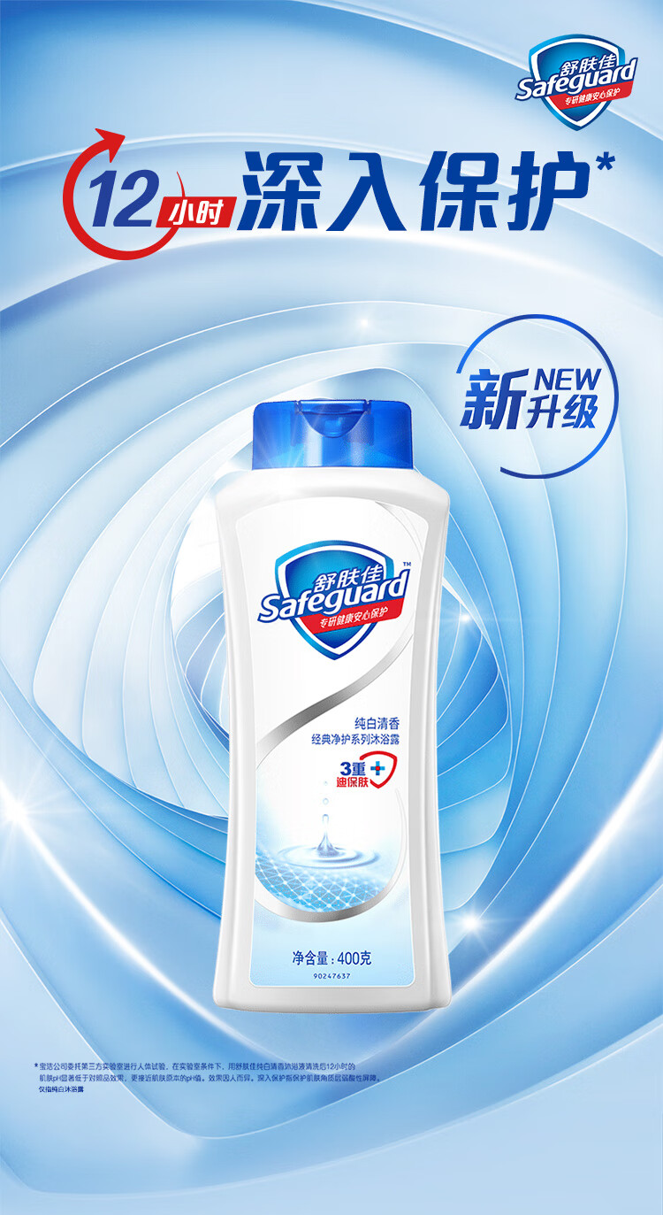 舒肤佳沐浴露 温和舒缓 无皂基 pH中性温和沐浴乳 男女通用沐浴露 纯白清香 400m