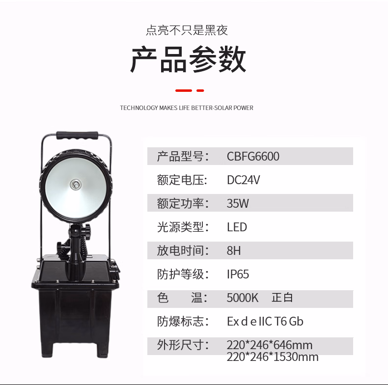 旭升(CXS) CBFG6600 35W IP65 Ex d e IIC T6 Gb DC24V 白光 色温5000K 防爆泛光工作灯 (计价单位:台) 黑色