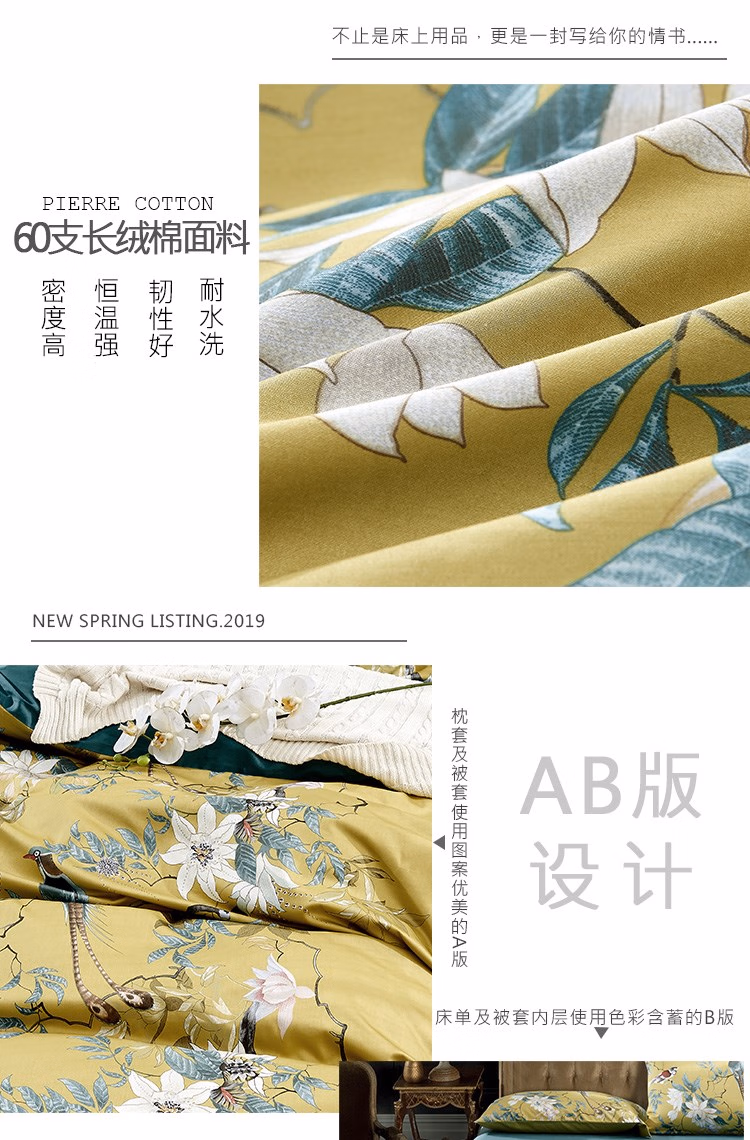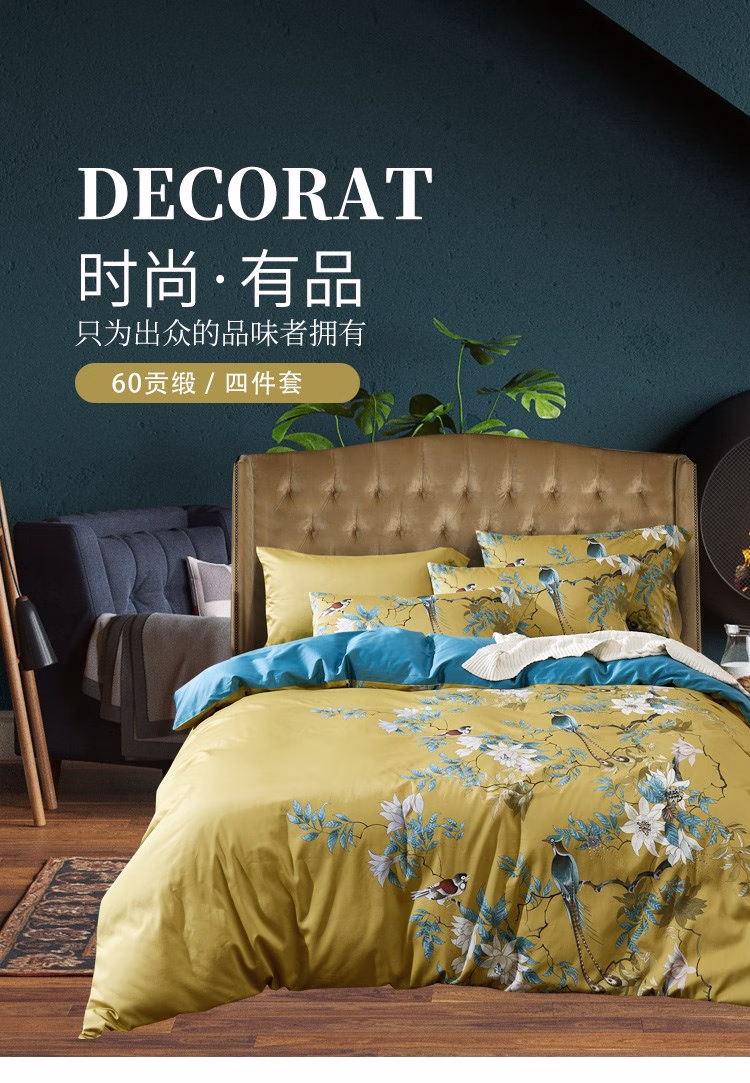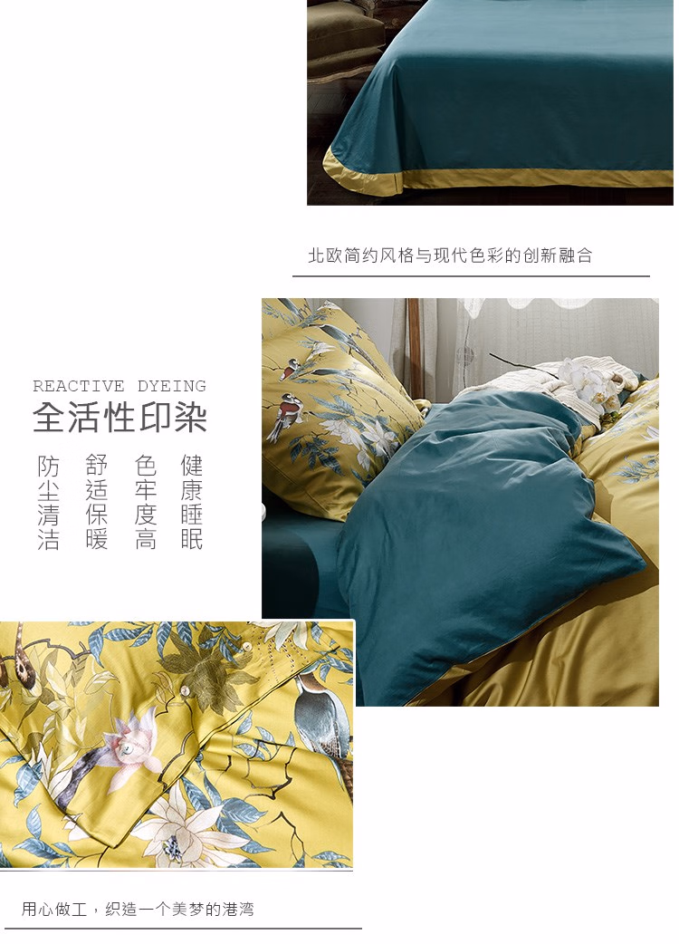 伊伊爱 TA1900065 200*230cm羽翠韵系列 60S贡缎长绒棉印花 床上四件套 (计价单位:套) 羽翠韵