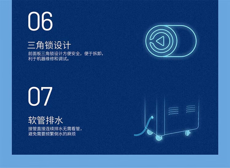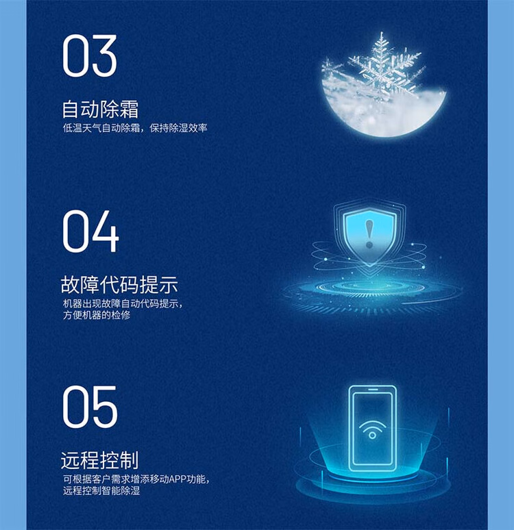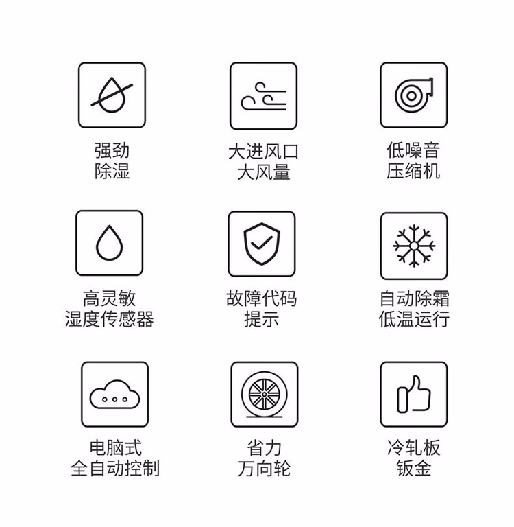 • 特色功能:湿度监控,倾斜停机,自动除霜