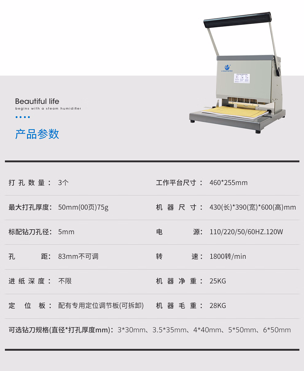• 商品名称:优玛仕(U-MACH)电动打孔机厚层省力型重型三孔打孔机U-DP333