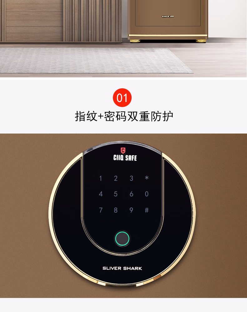 驰球(CIIQ) 新银鲨2代 FDG-A1/D-55YSZ2 578*430*360 指纹锁保险柜 (计价单位:个) 铜金色