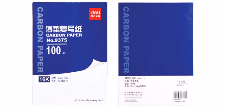 得力(deli) 9375 16K 薄型 100页/盒 复写纸 (计价单位:盒) 蓝色