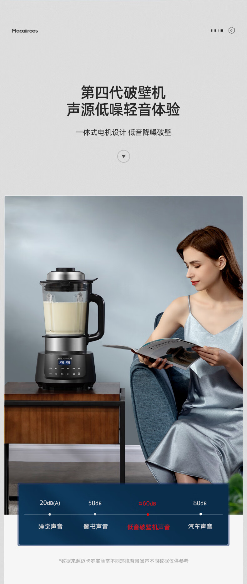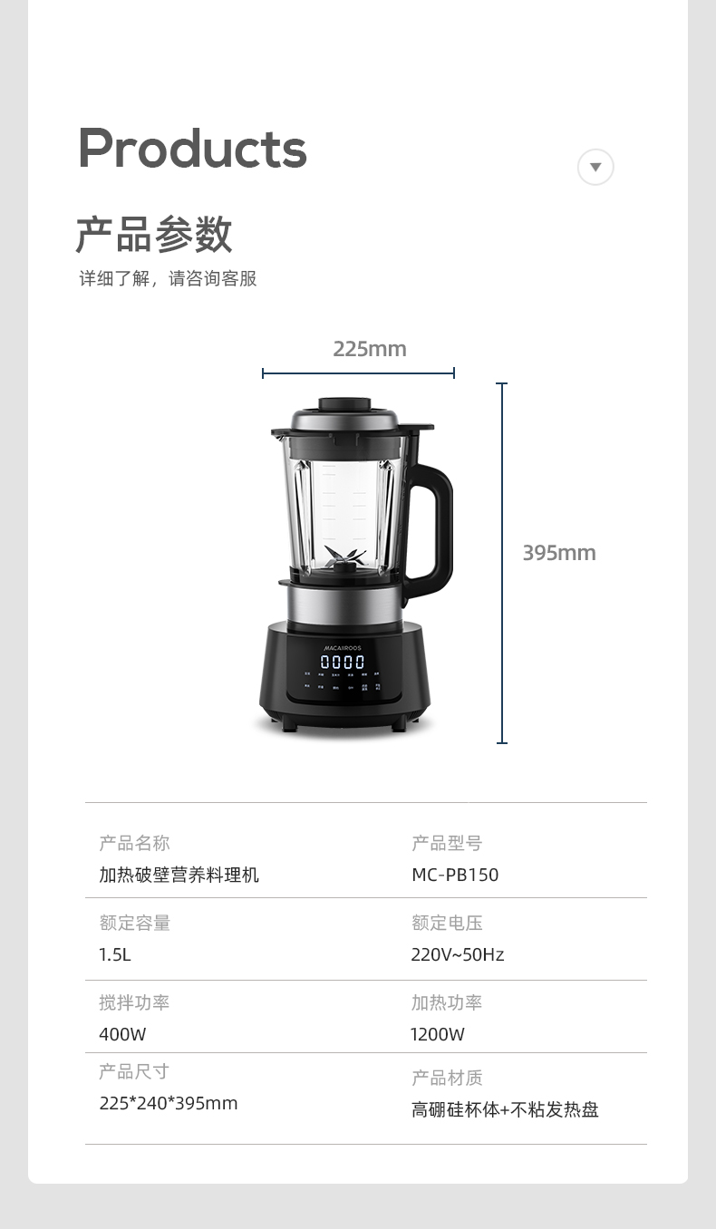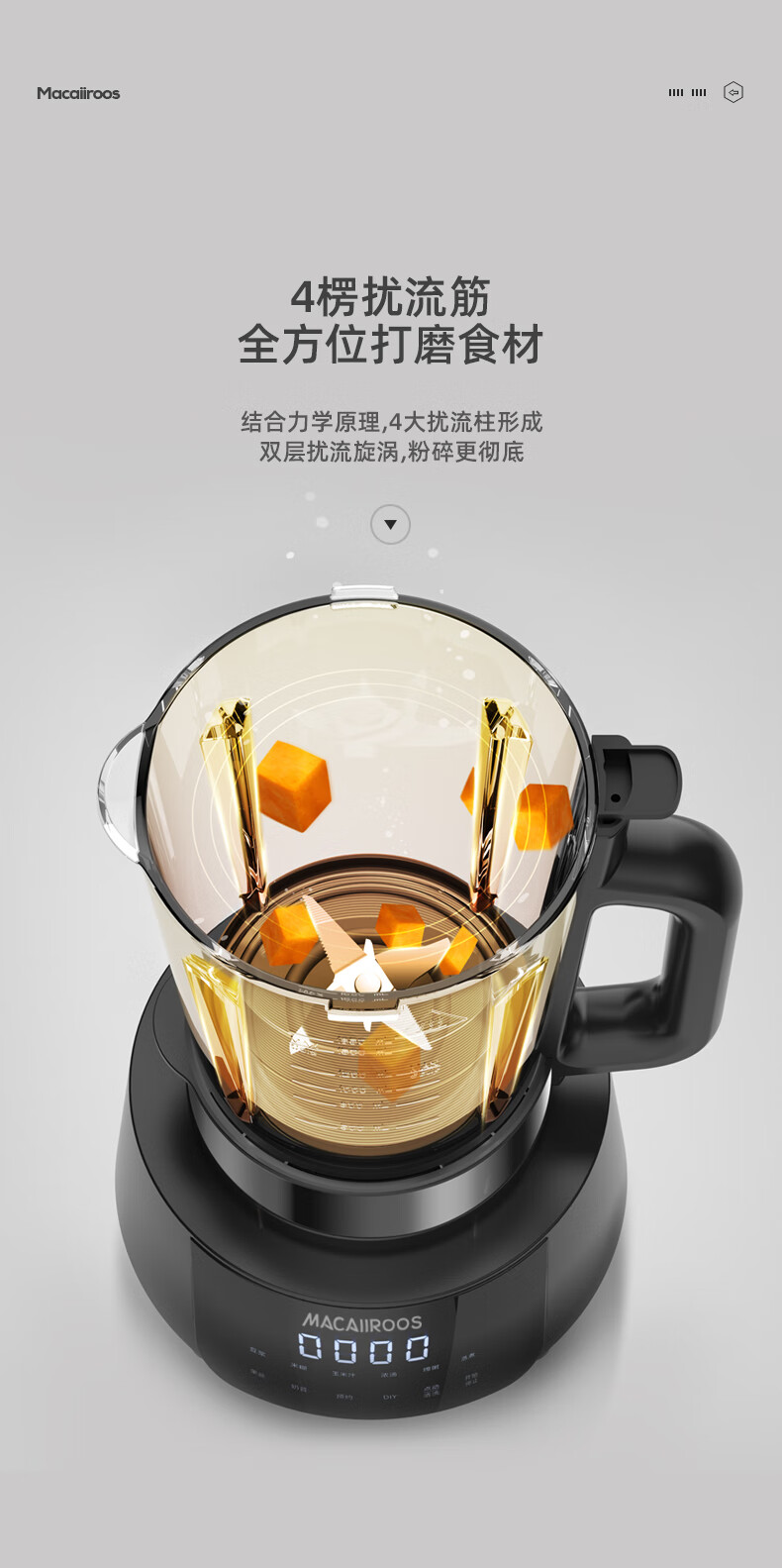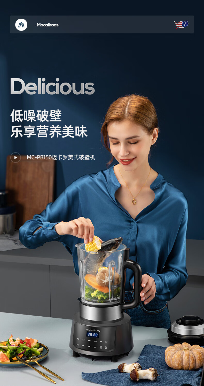 迈卡罗 (MACAIIROOS)破壁机家用低噪轻音加热多功能料理机全自动豆浆机婴儿辅食榨汁机果汁机 MC-PB150