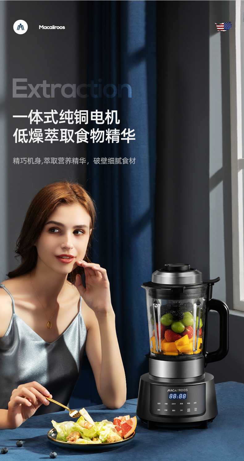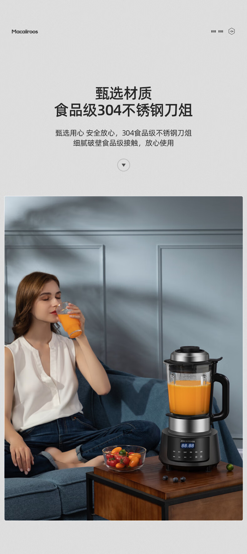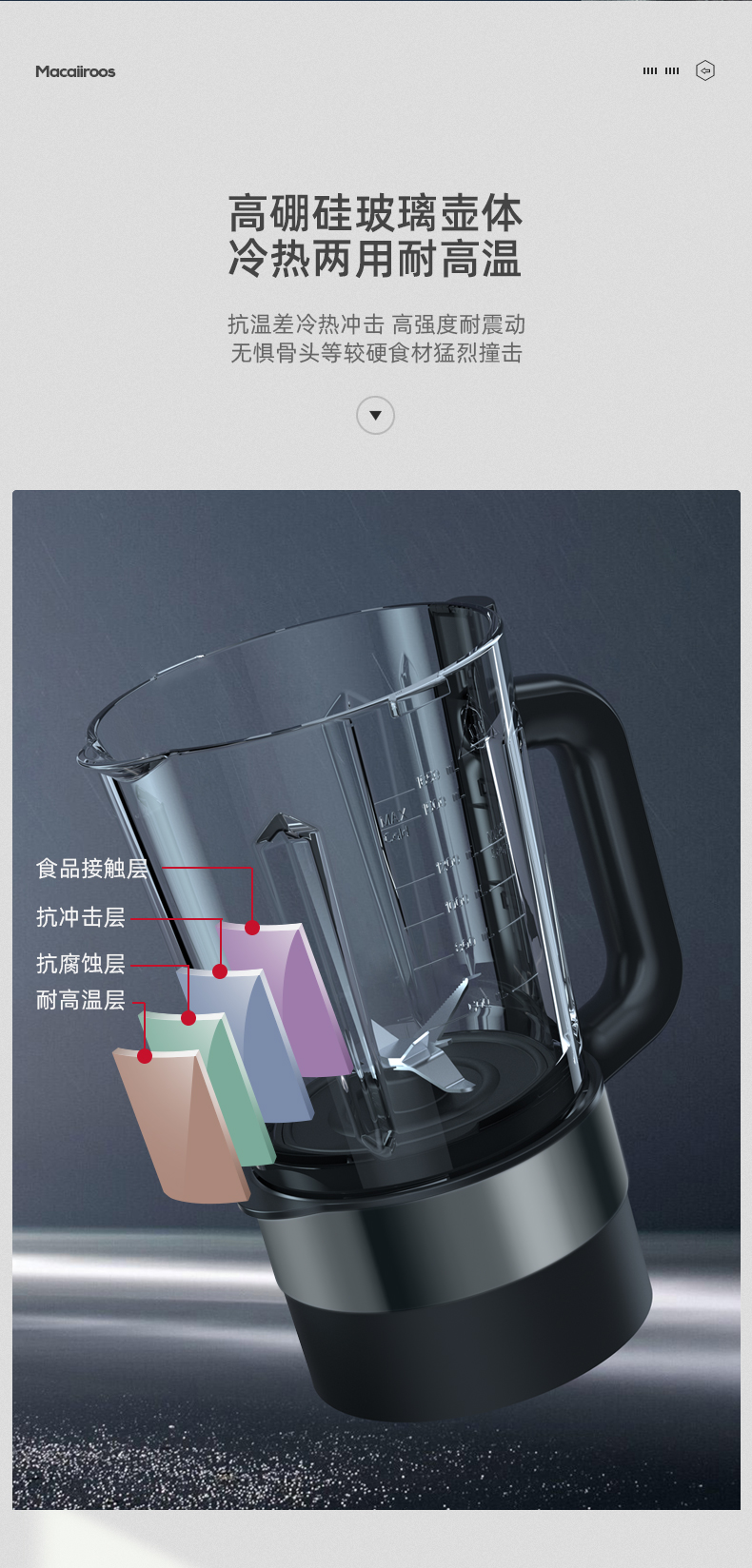 迈卡罗 (MACAIIROOS)破壁机家用低噪轻音加热多功能料理机全自动豆浆机婴儿辅食榨汁机果汁机 MC-PB150
