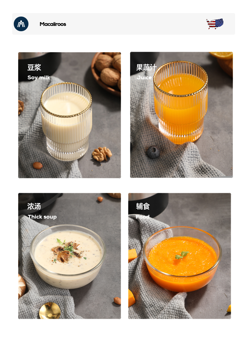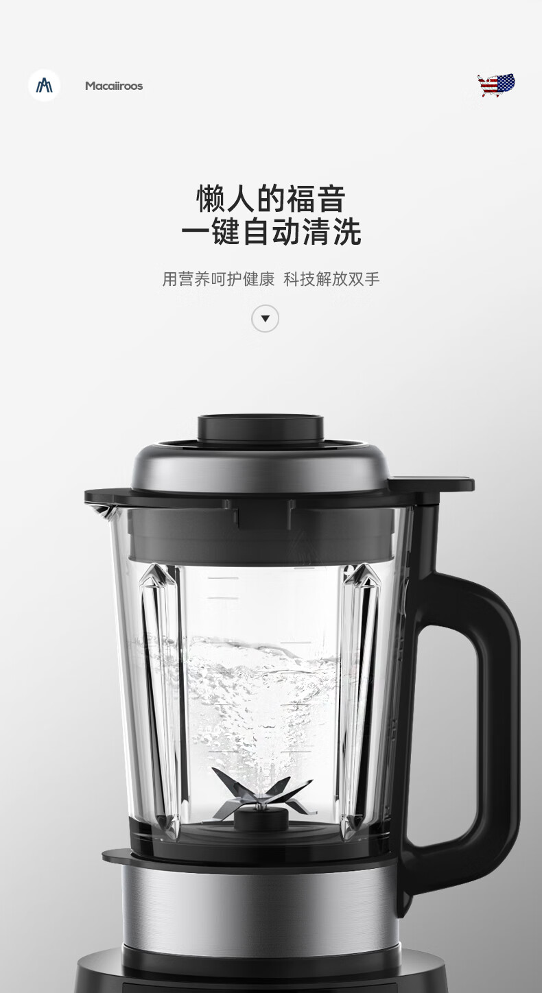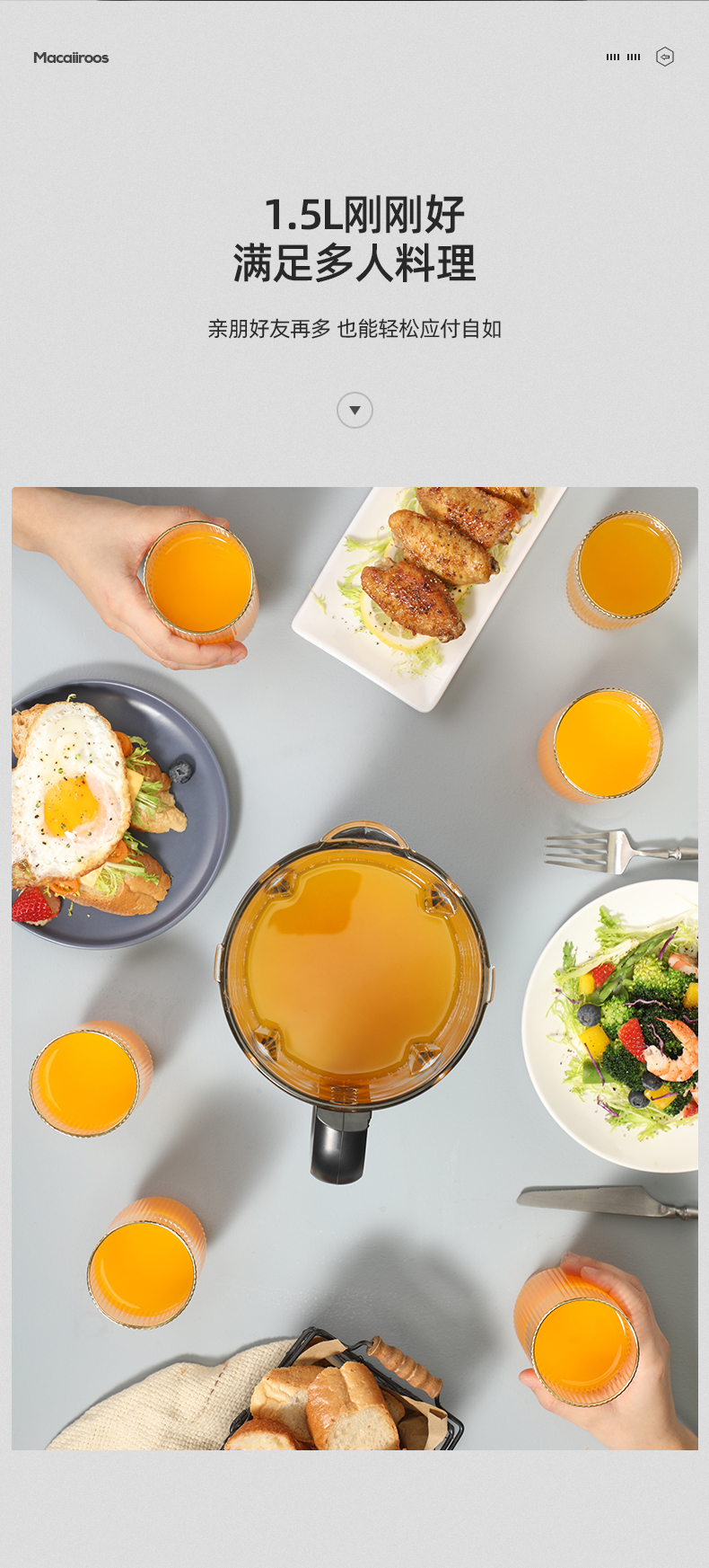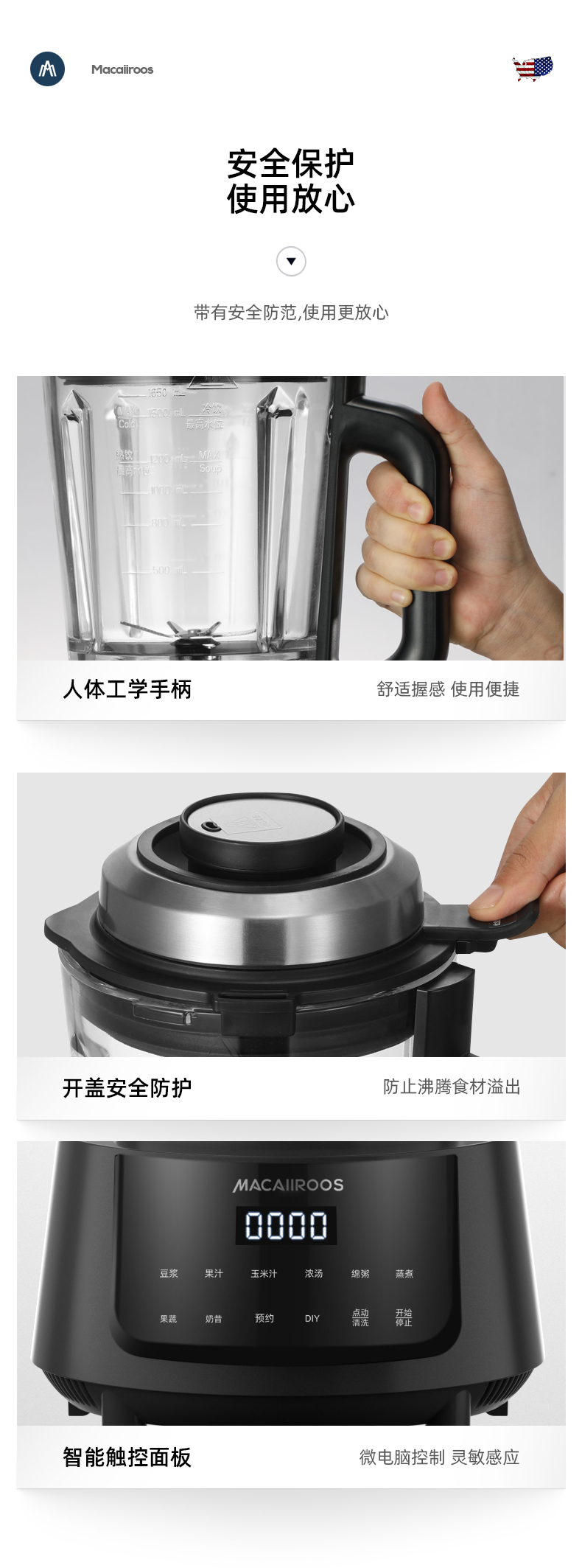 迈卡罗 (MACAIIROOS)破壁机家用低噪轻音加热多功能料理机全自动豆浆机婴儿辅食榨汁机果汁机 MC-PB150