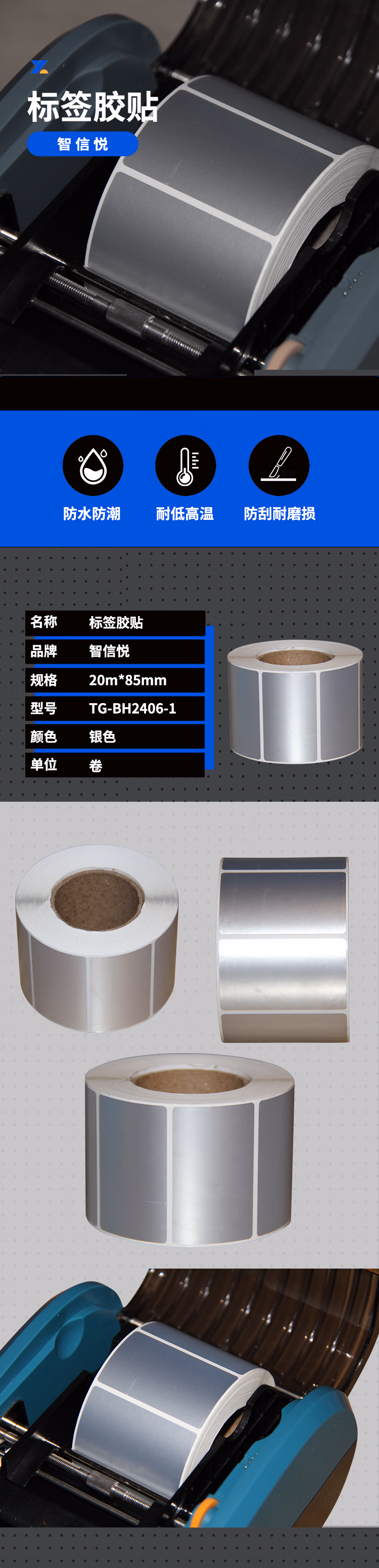 • 商品名称:智信悦 20m*85mm 标签胶贴 1.00盒/卷银色TG-BH2406-1