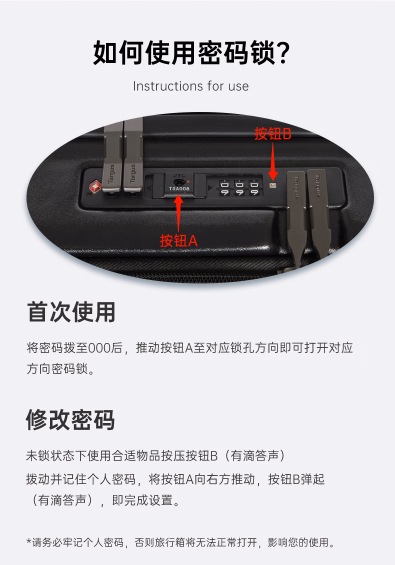 • 锁具类型:TSA密码锁