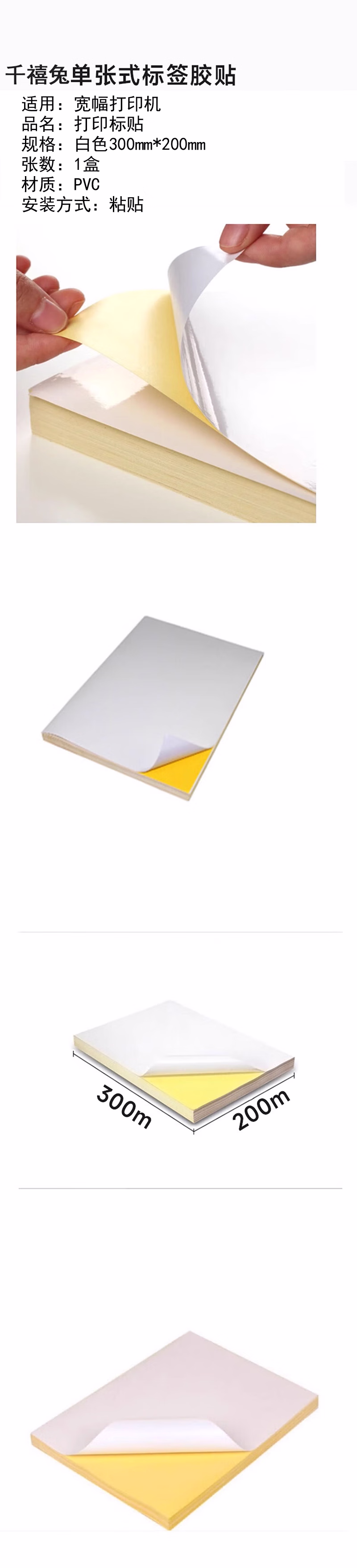 • 商品名称:千禧兔(QXIRAB) QXT-125 300mm*200mm 打印标贴 (计价单位:盒) 白色