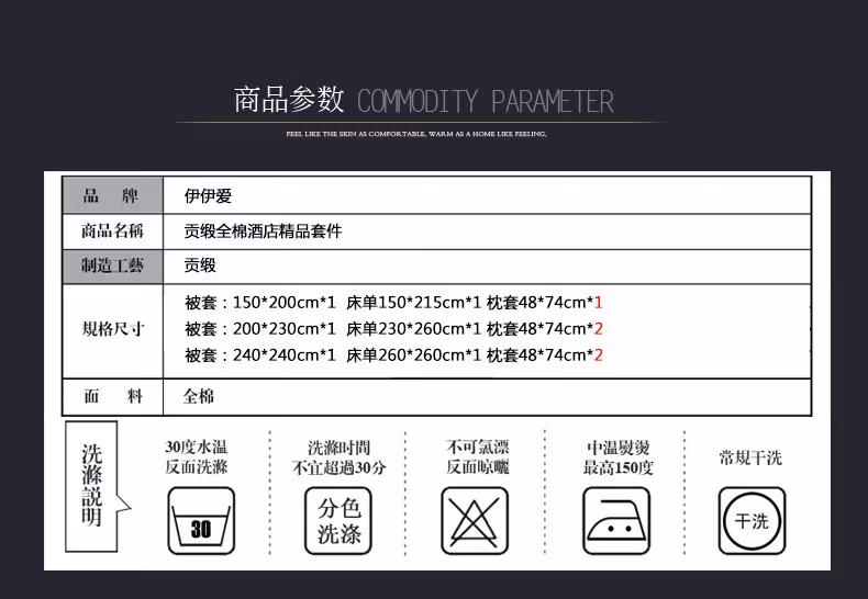 • 商品名称:伊伊爱 CMTJ-17XK-1011 纯棉贡缎纯白宾馆精品套(计价单位:条) 纯白 240*240cm四件套