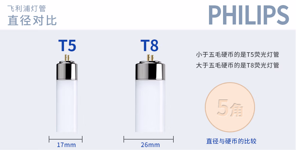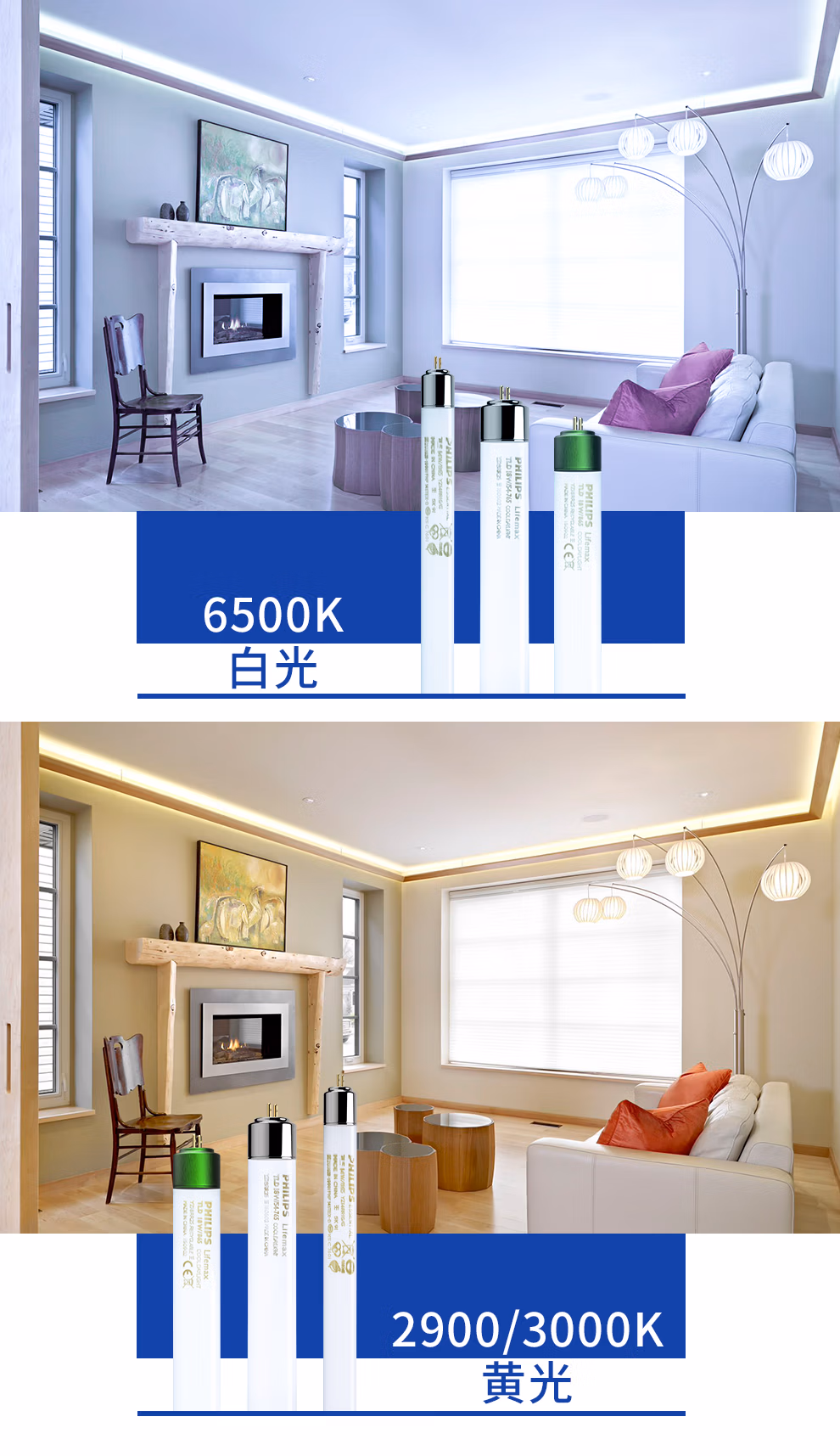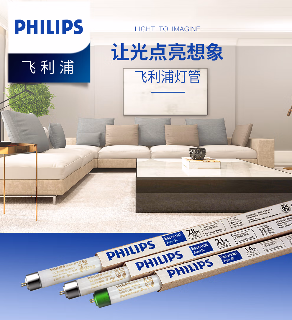 飞利浦(PHILIPS) 灯管日光灯管三基色节能灯管荧光灯管细管家用灯管长条格栅灯灯管 TL5/14W/长度56cm-单支 白光-6500K 单位:支 10支起订