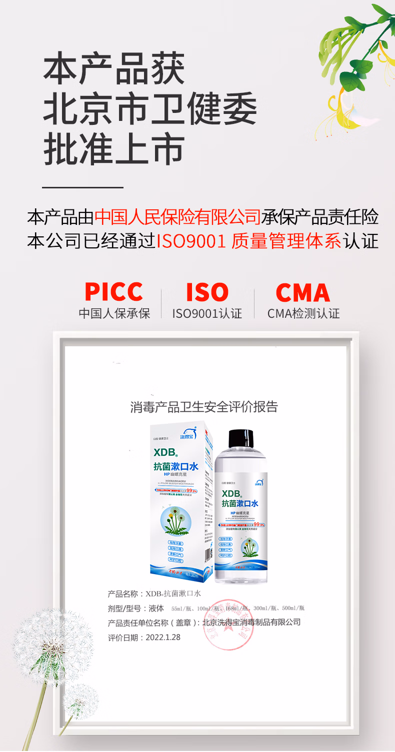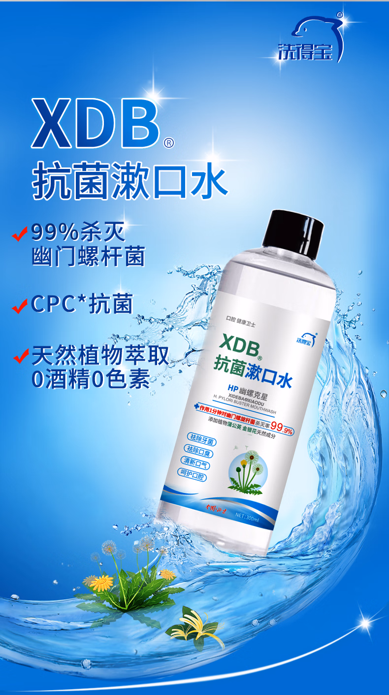洗得宝 天然植物萃取 杀灭幽门螺杆菌 300ml/瓶 抗菌漱口水(家庭装) (计价单位:支)