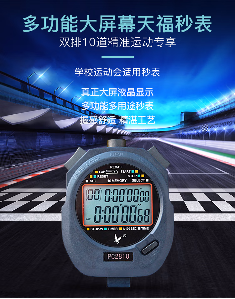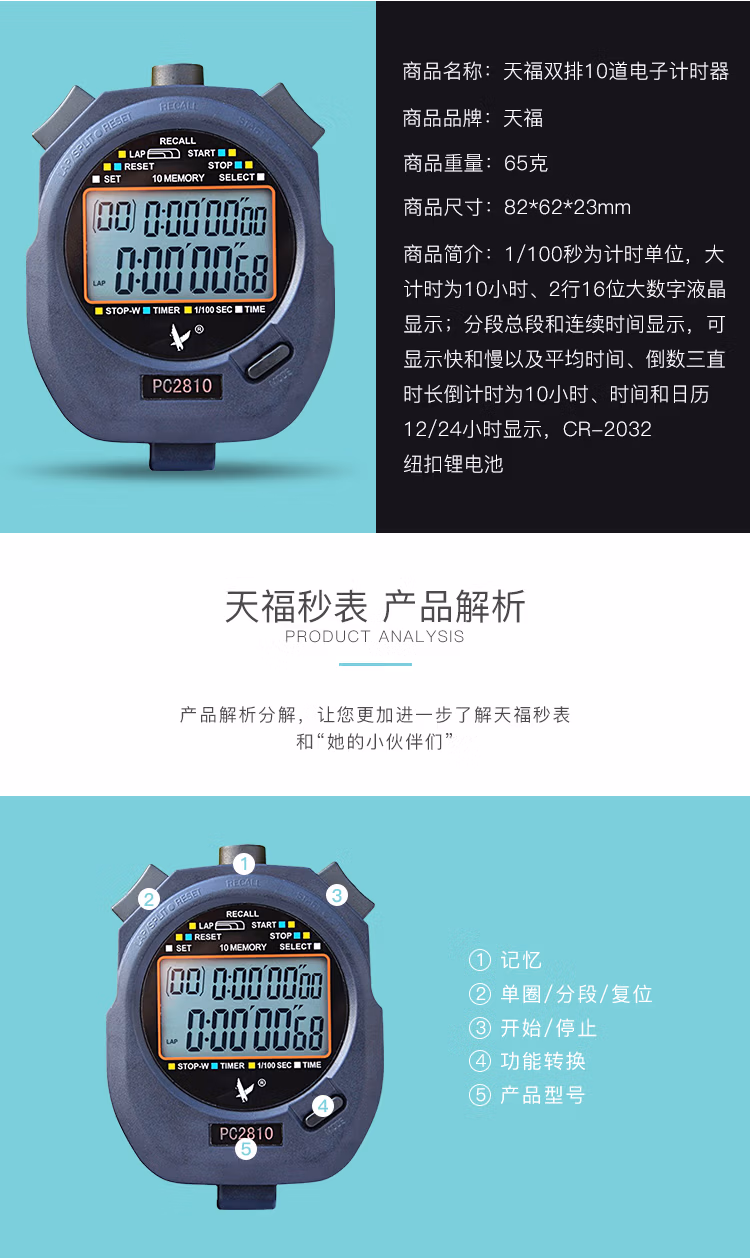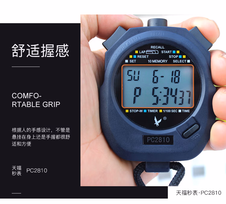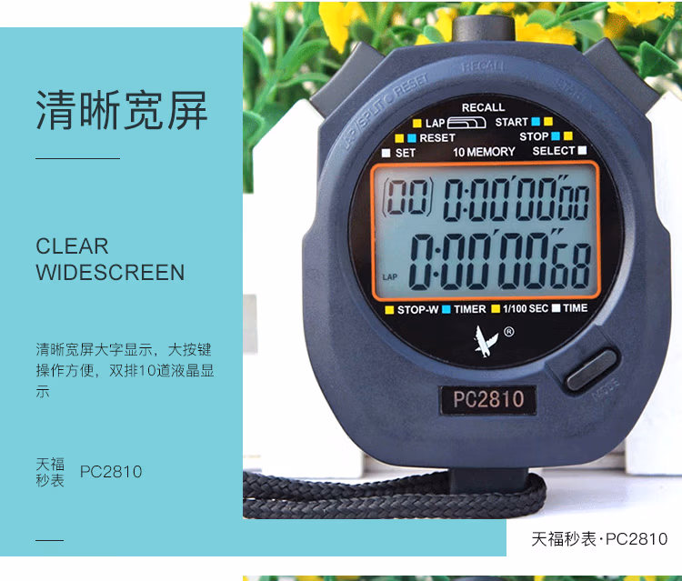 天福 PC2810 双排10道 电子跑表 计时器 (计价单位:个) 灰色