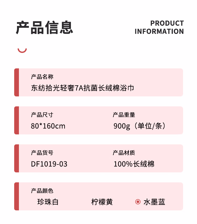 • 商品名称:东纺拾光轻奢7A抗菌长绒棉浴巾80*160cm 900g 水墨蓝 (单位:条)
