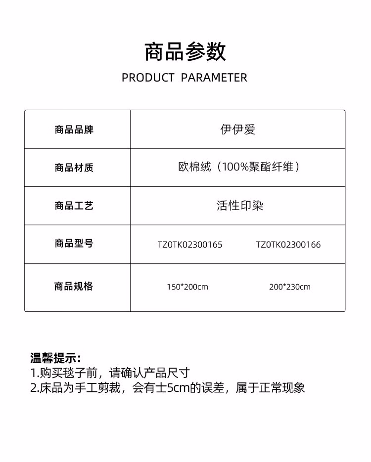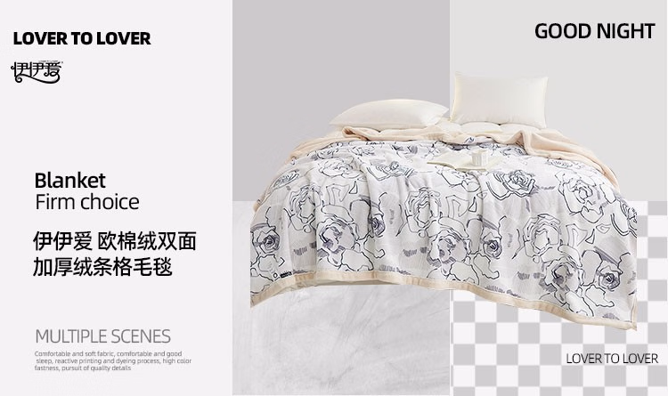 伊伊爱 TZ0TK02300165 150*200cm 欧棉绒双面加厚绒印花毛毯 毯子 1.00 件/条 (计价单位:条) 花千朵