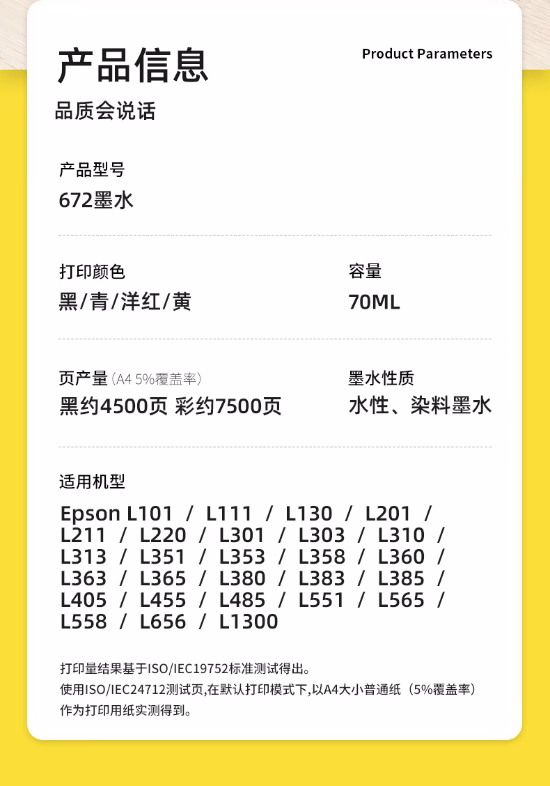 适用爱普生彩色喷墨打印机 Epson L101/L111/L130/L201/L211/L220/L301/L303/L310/L313/L351/L353/L358/L360/L363/L365/L380/L383/L385/L405/L455/L485/L551/L565/L558/L656/L1300