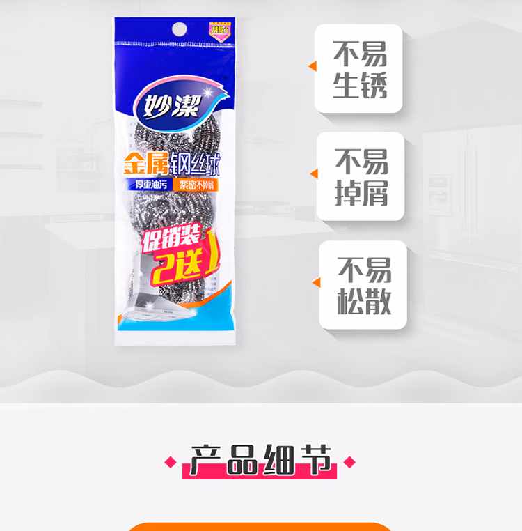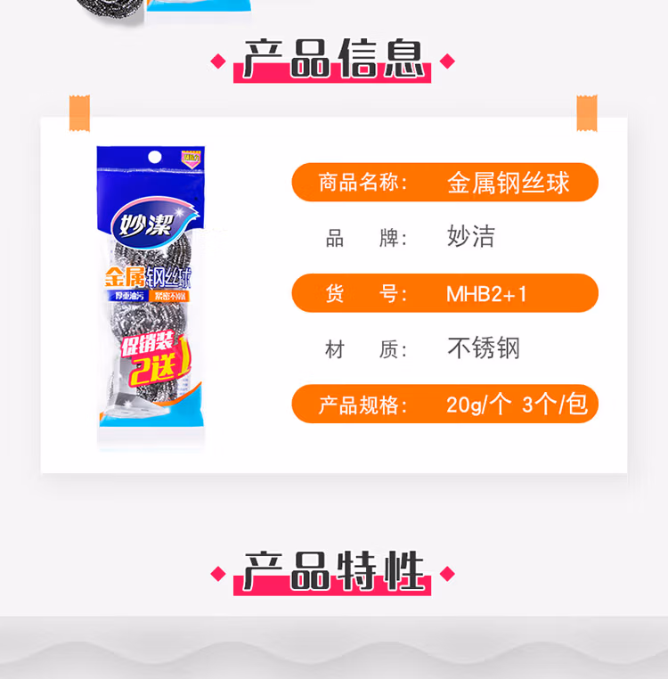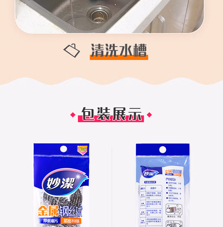 • 商品名称:妙洁钢丝球洗碗球清洁钢丝刷锅刷 3只装