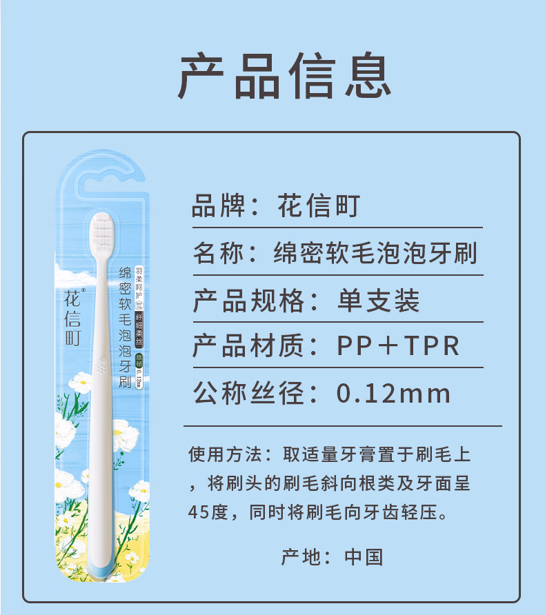 花信町 绵密软毛泡泡 单支装 牙刷 (计价单位:支)