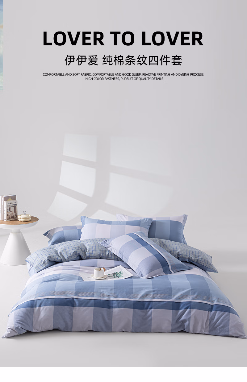 • 商品名称:伊伊爱纯棉条纹四件套 芙卡(蓝) 200*230cm/YZCGJD0240941