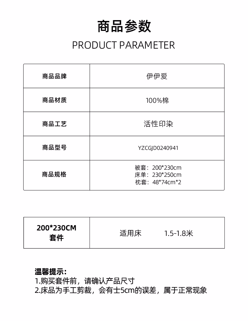 伊伊爱 YZCGJD0240941 200*230cm 四件套 (计价单位:套) 蓝格
