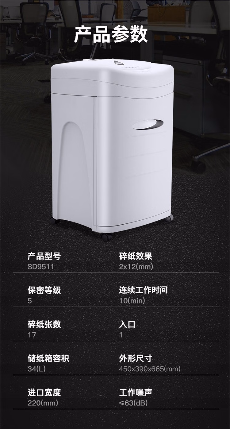 三木(SUNWOOD) SD9511 34L 德国5级保密 碎纸机 (计价单位:台) 白色