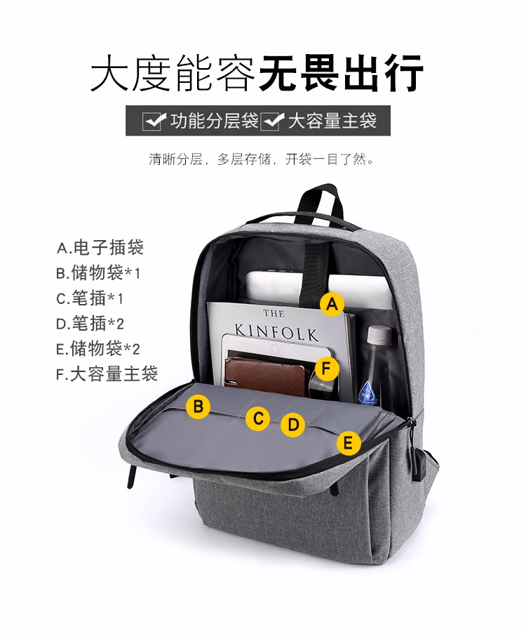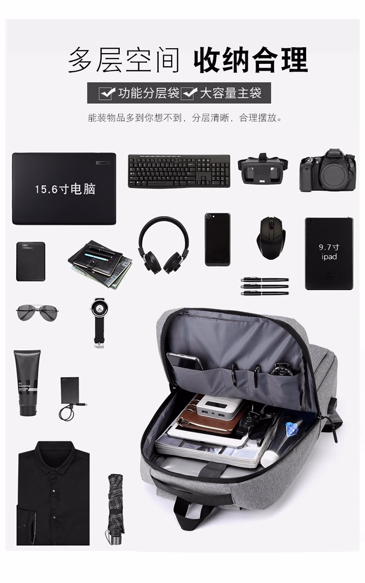 三极户外(Tri-Polar) TP2029男士双肩商务旅行背包休闲大容量双肩包男士电脑包多功能包 双肩包 (计价单位:个) 黑色