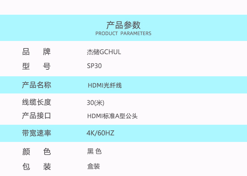 • 商品名称:杰储(GCHUL) SP30 30米 光纤HDMI线 (计价单位:根) 黑色