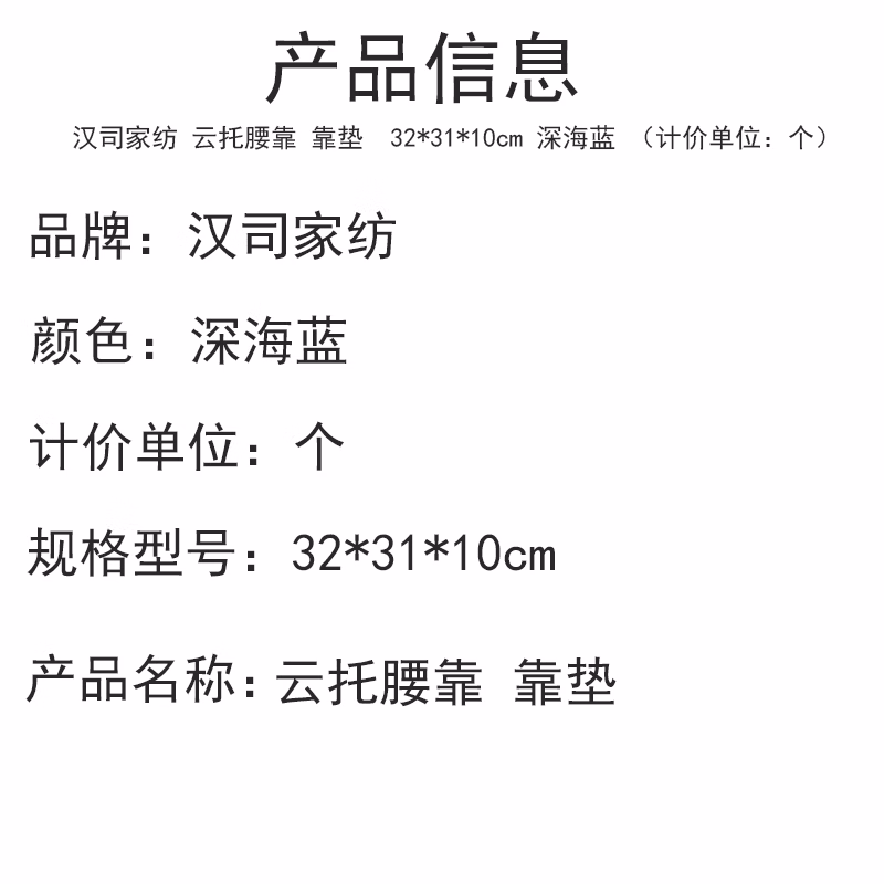 汉司家纺 云托腰靠 32×31×10cm 蓝 靠垫 (计价单位:件) 深海蓝