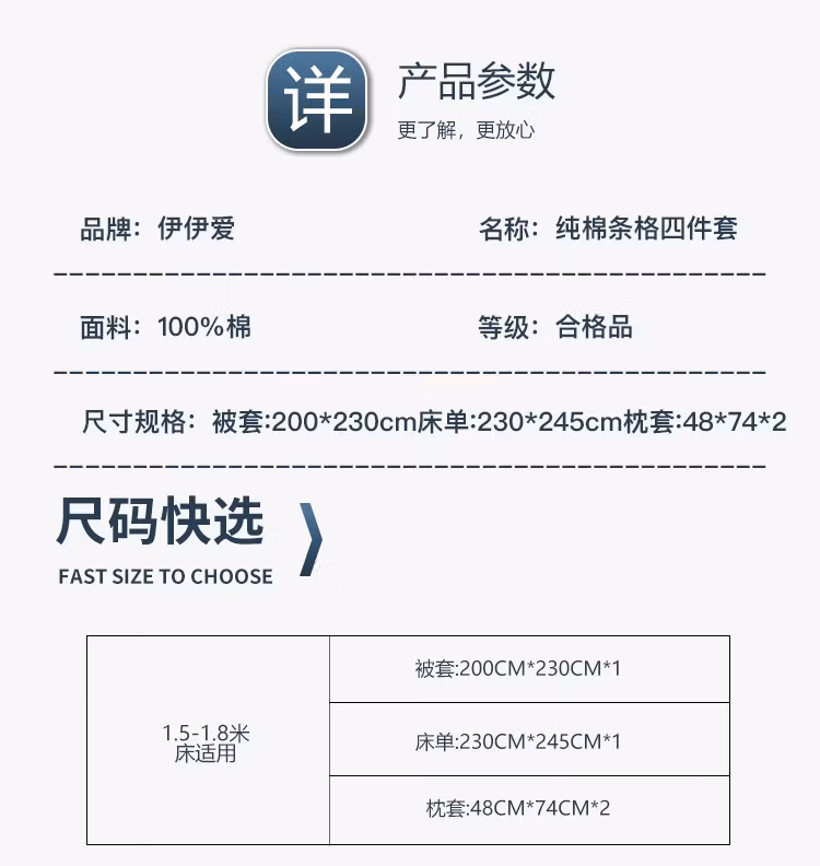 • 商品名称:伊伊爱 时尚纯棉亲肤条格四件套 平行线 200*230cm/TJ0NH02201496