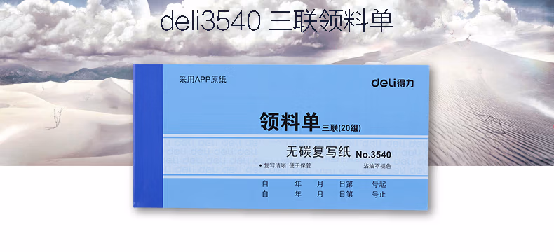 得力(deli) 3534 三联 多栏收据 20组/本 财务单据 (计价单位:本) 蓝色