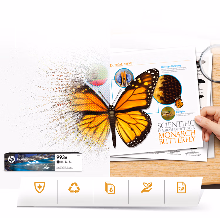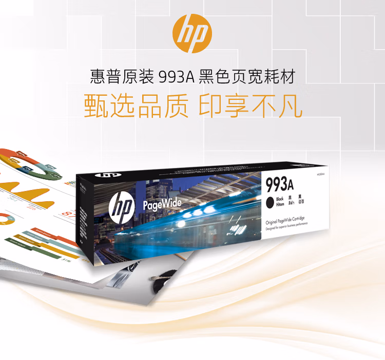 惠普原装 993A 黑色页宽耗材 *平均打印覆盖率基于ISO/IEC 24711 |