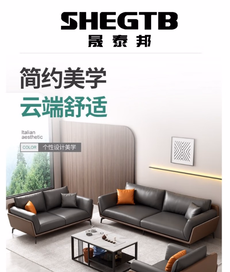 晟泰邦 商务办公沙发真皮轻奢老板办公室会客区现代接待室沙发 三人位(加厚NAPA西皮) 颜色可定制 单位:个