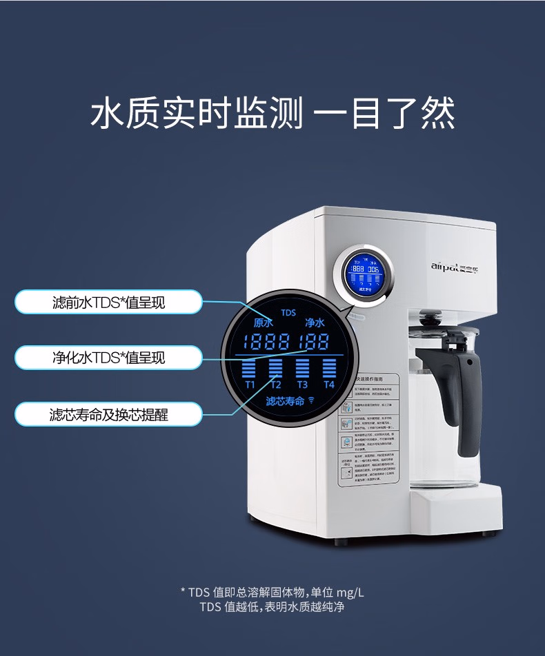 • 商品名称:爱宝乐(airpal) 免安装净水器家用 RO反渗透 智能直饮纯水机R180 AP-R180mw