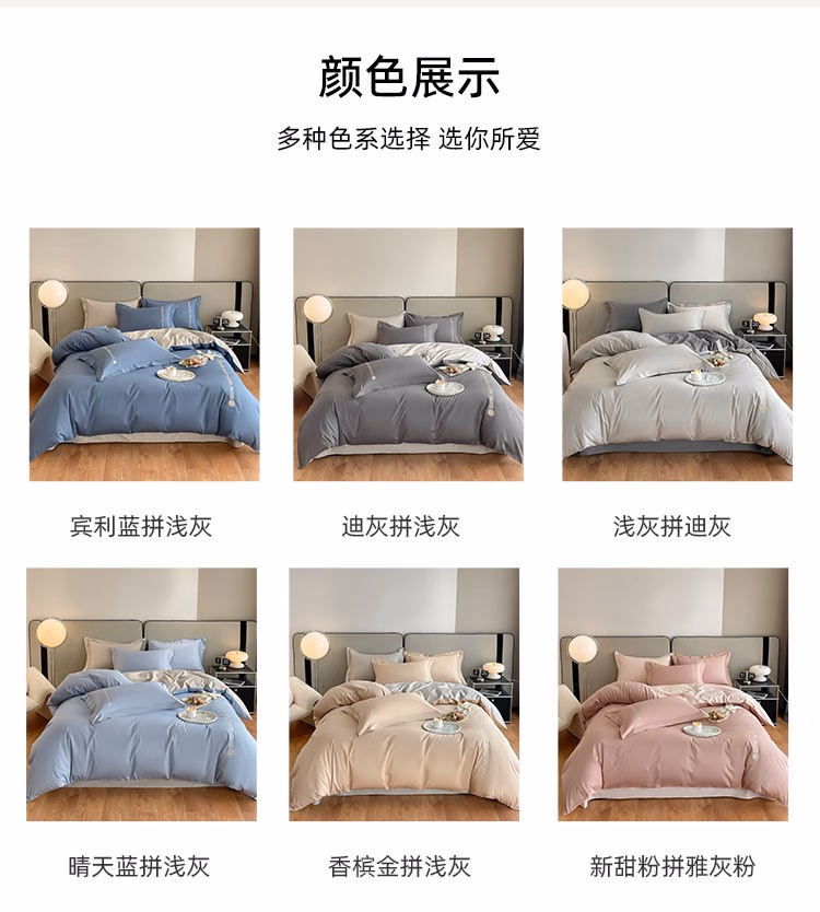 伊伊爱 TJ0HJC2301970 被套:220*240cm 床单:245*270cm 枕套:48*74cm*2 四件套 (计价单位:套) 宾利蓝拼浅灰