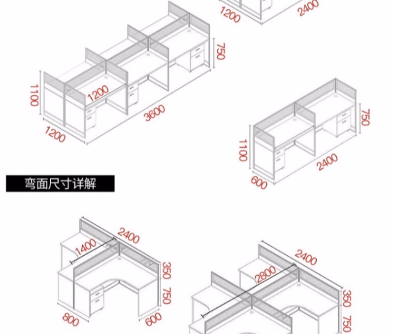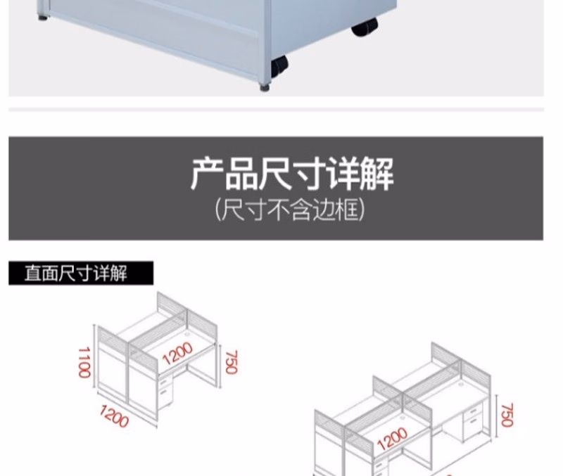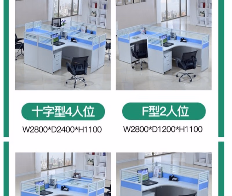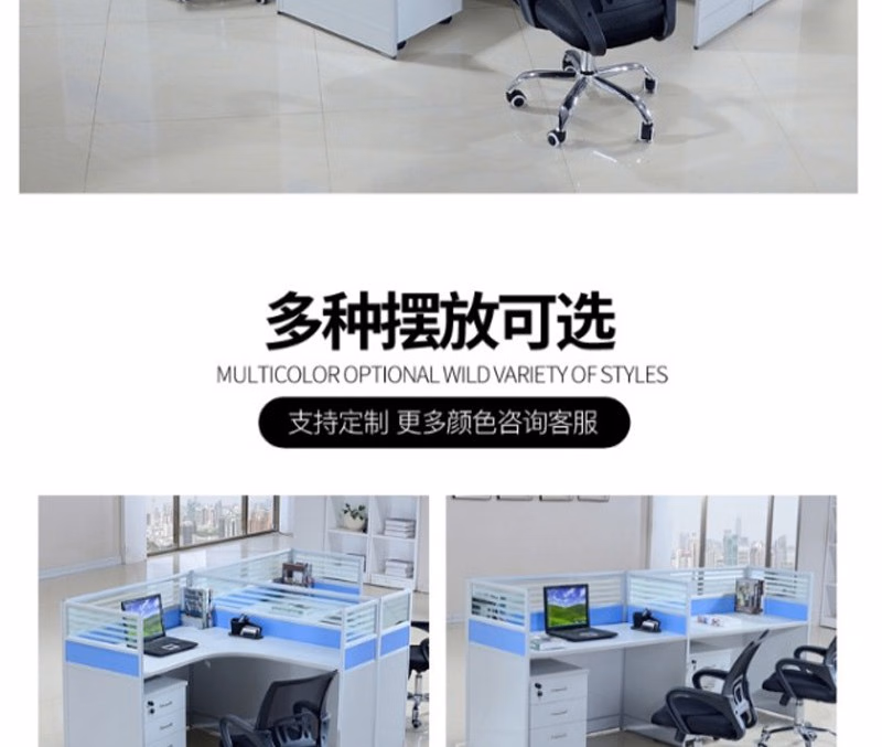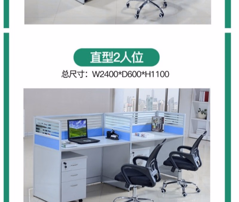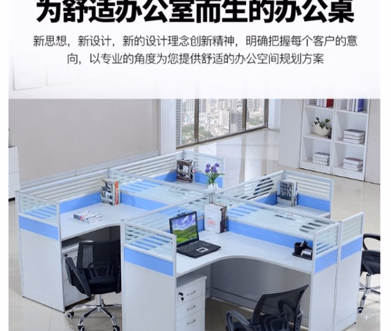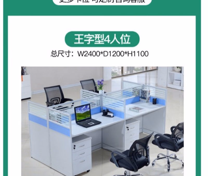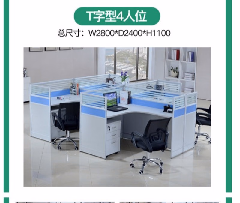 晟泰邦 职员桌4人简约现代屏风办公桌椅组合电脑卡座办工桌 T字2人位+活动柜 定制 单位:套