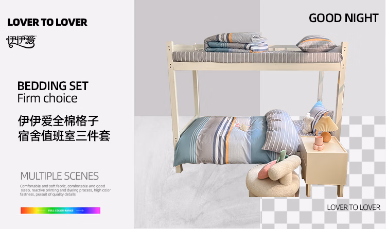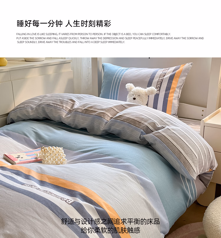 伊伊爱 TJ0HJC2401305 150*200cm 全棉条纹宿舍值班室三件套 床上套件 (计价单位:套) 青春律动