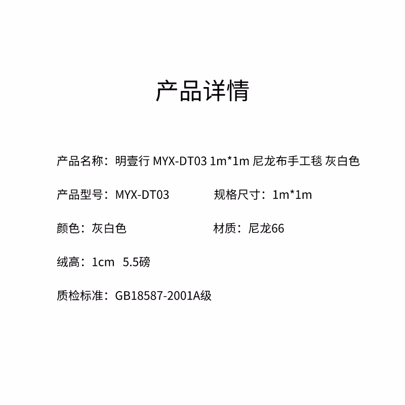 明壹行 MYX-DT03 尼龙66 1m*1m 地毯 (计价单位:块) 灰白色