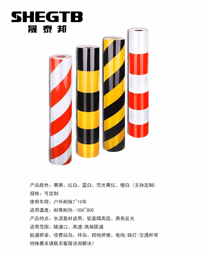 晟泰邦STB警示反光膜 防撞柱反光膜 铝基反光膜 1*1.2米(红白)单位:平方米