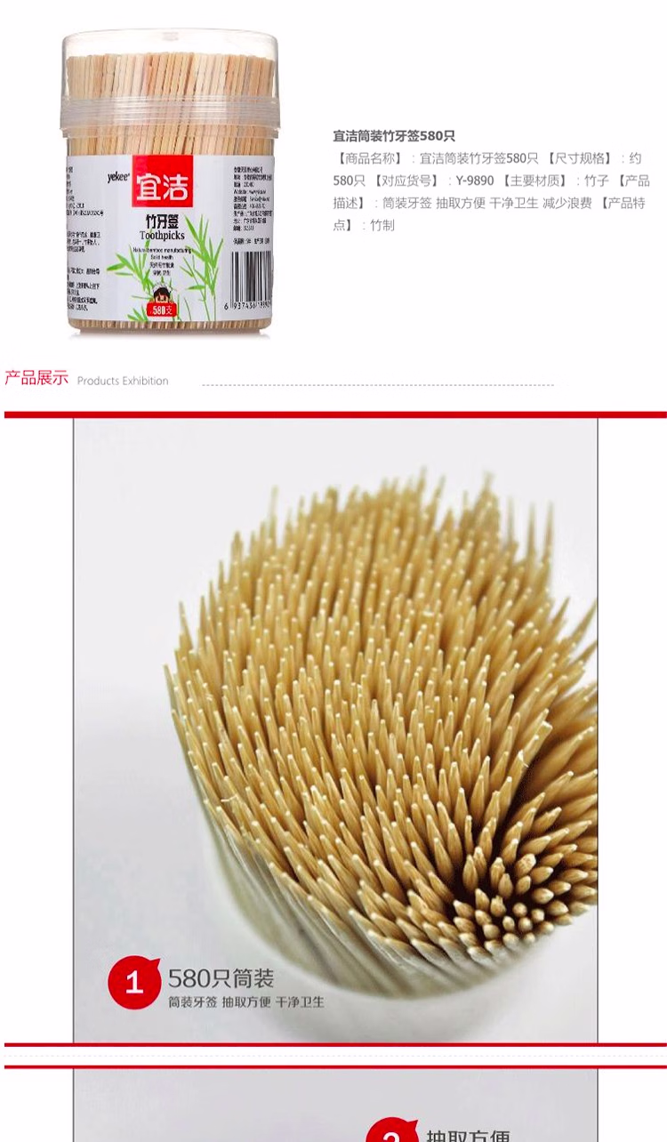 宜洁牙签筒装竹制牙签580枚一次性竹牙签 Y-9890s 单位:盒