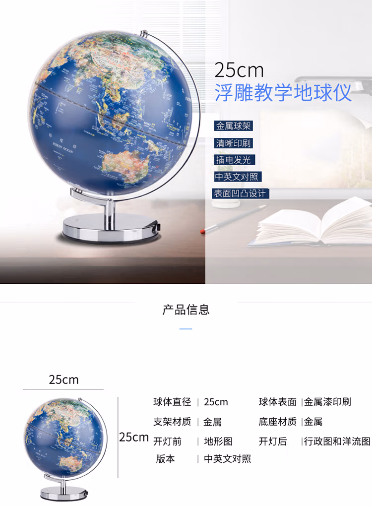 得力(deli) 2164 直径25cm 地球仪 1.00 个/只 (计价单位:只) 蓝色