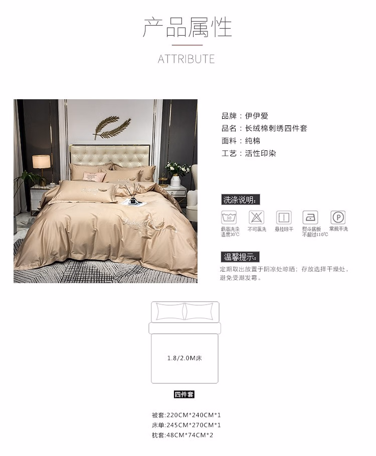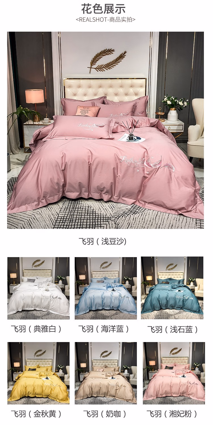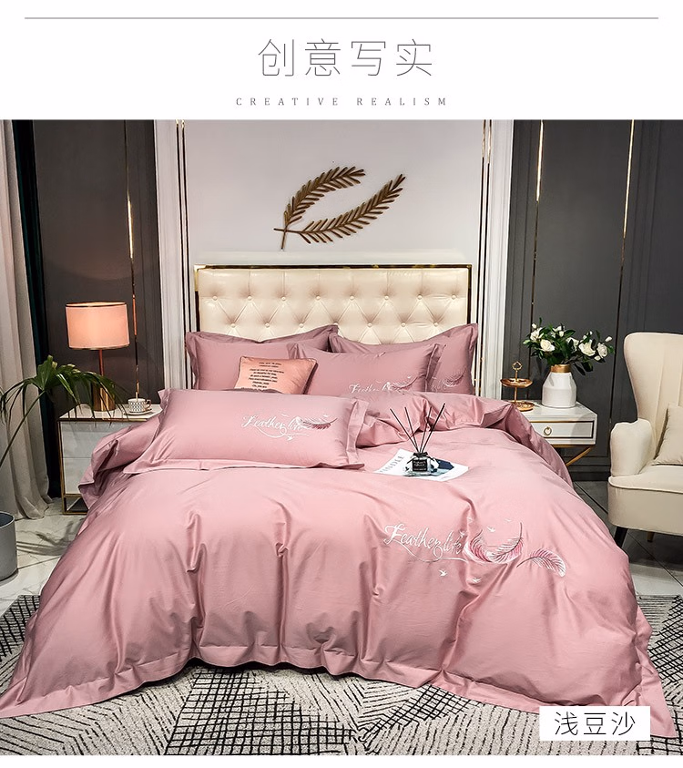 • 商品名称:伊伊爱飞羽系列50S纯棉四件套混色 飞羽(湘妃粉) 200*230cm-T02000282