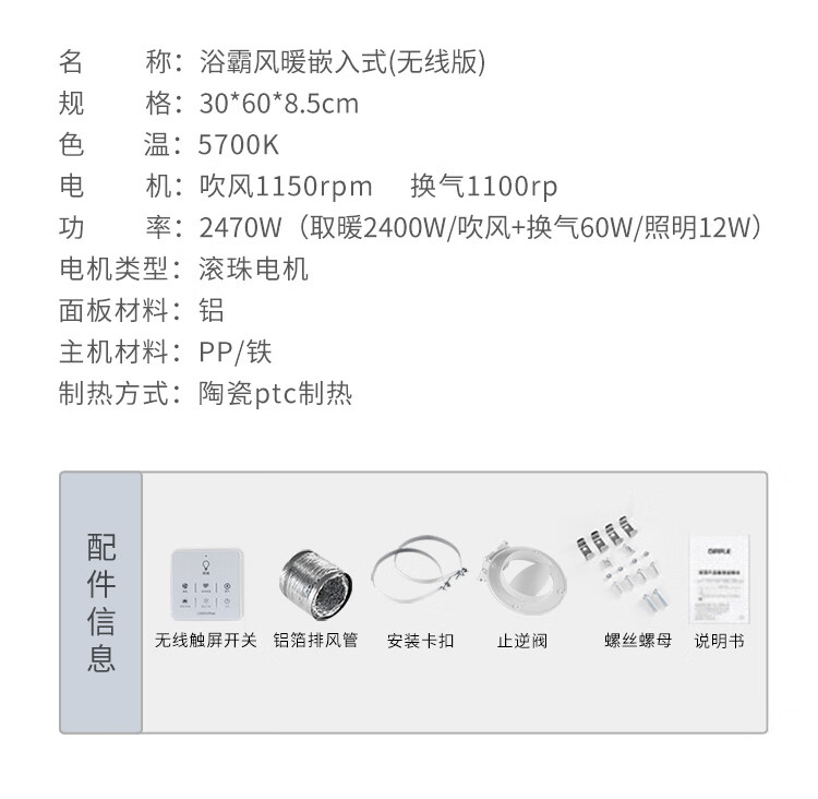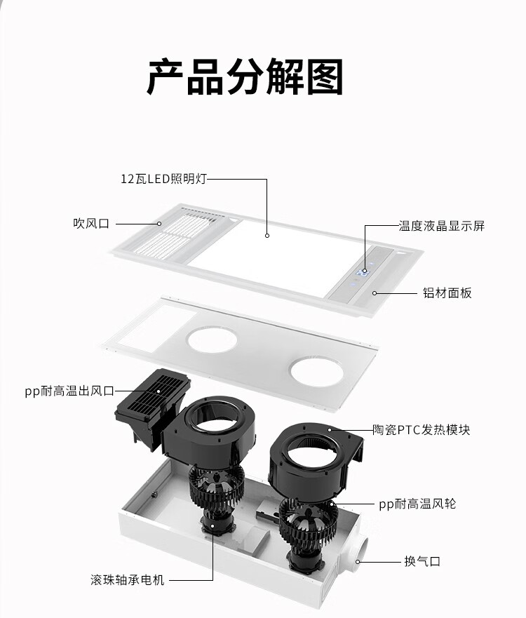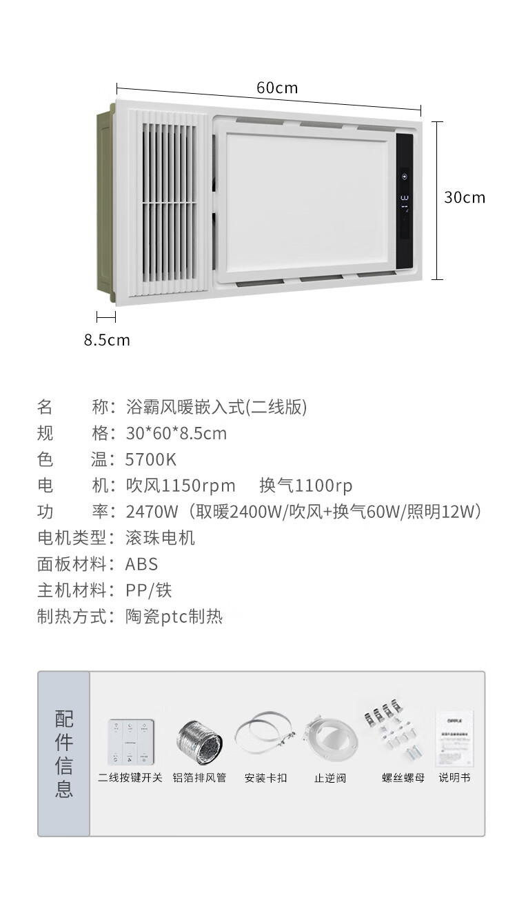三雄极光多功能风暖浴霸集成吊顶灯家用嵌入式暖风机排气照明一体 怡家浴霸 PAK980001 单位:套